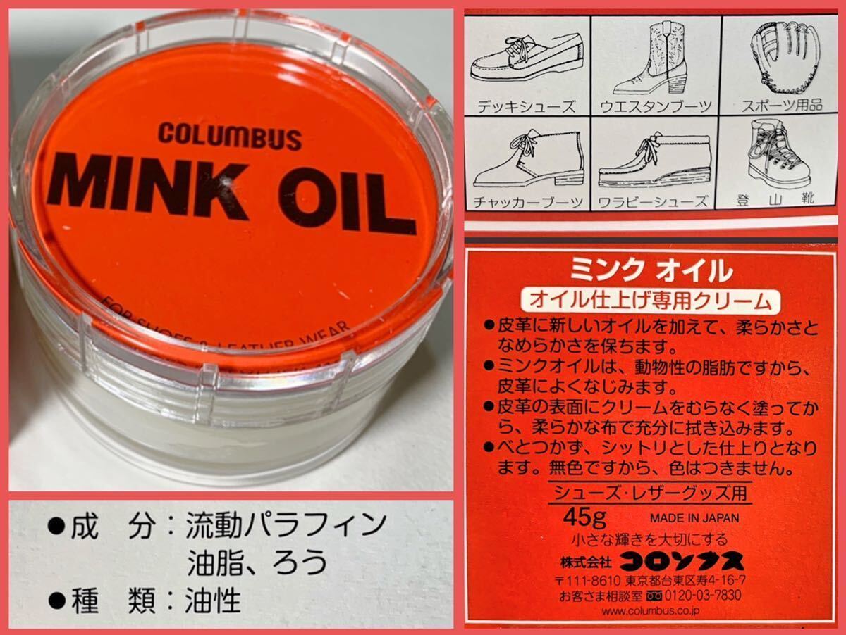 新品コロンブス赤箱ミンクオイル無色45g革靴ビジネスシューズ皮革レザー オイル仕上げ専用クリーム登山靴デッキシューズ スポーツ グローブ
