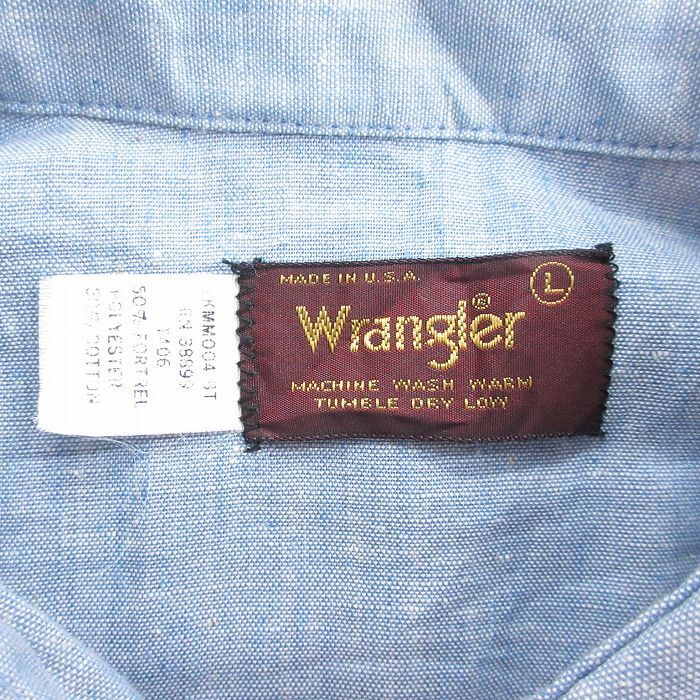 L/古着 ラングラー 長袖 シャンブレー ウエスタン シャツ メンズ 80s 薄紺他 ネイビー 25oct14 中古 トップス