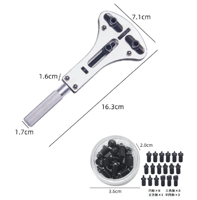 【vaps_7】3点支持オープナー (大) 4種 18ビット付 防水時計用 スクリューバック 裏蓋 外し 送込