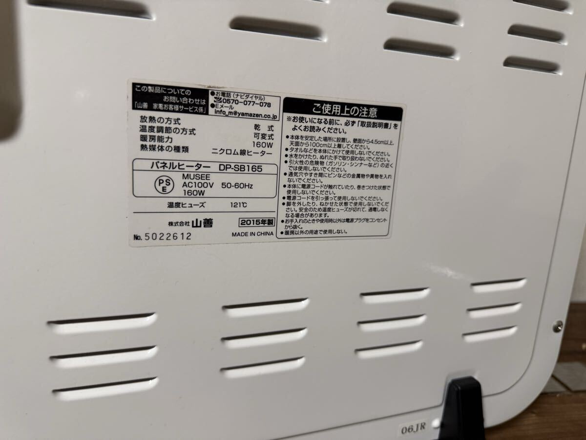 展示品★極美品★YAMAZEN★山善★パネルヒーター★DP-SB165★生活家電★家電★ホワイト★コンパクト★暖房器具★動作確認済み★