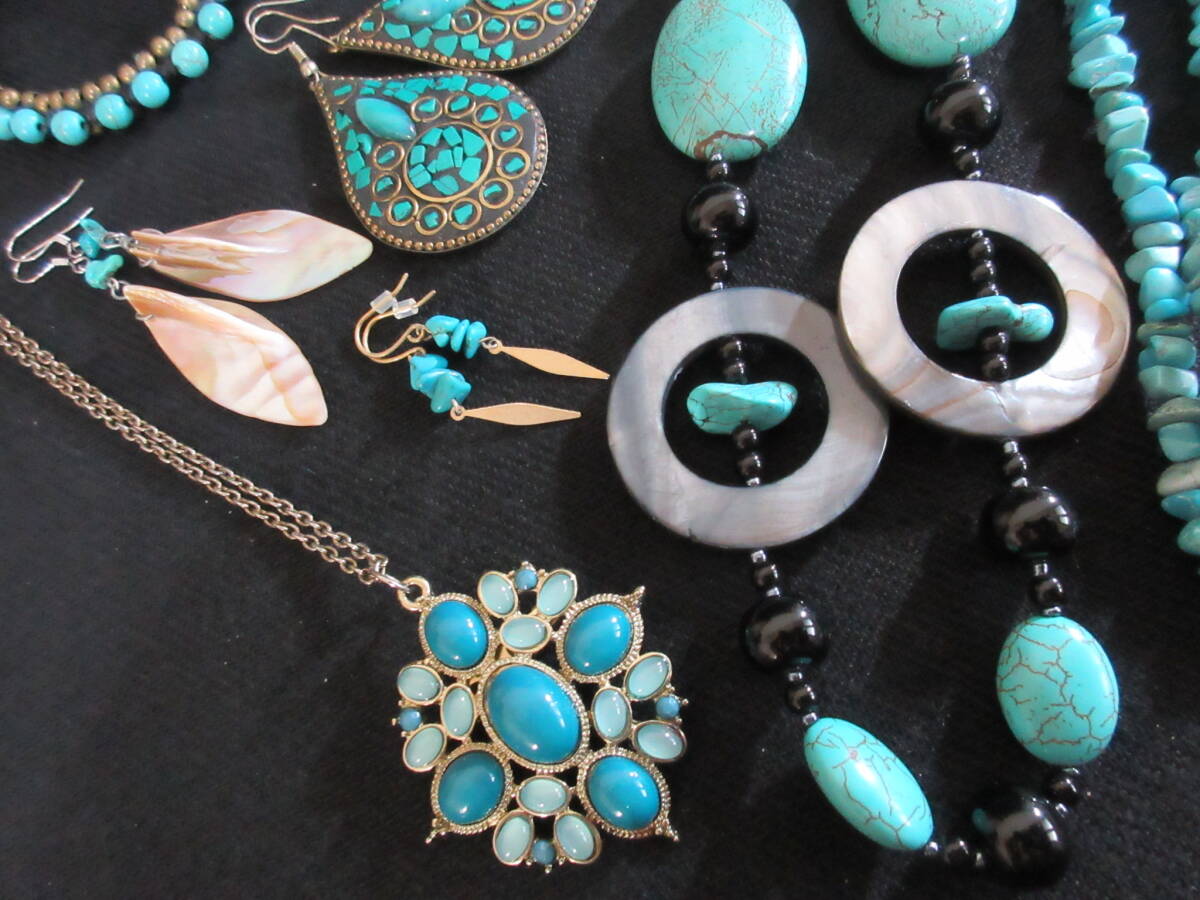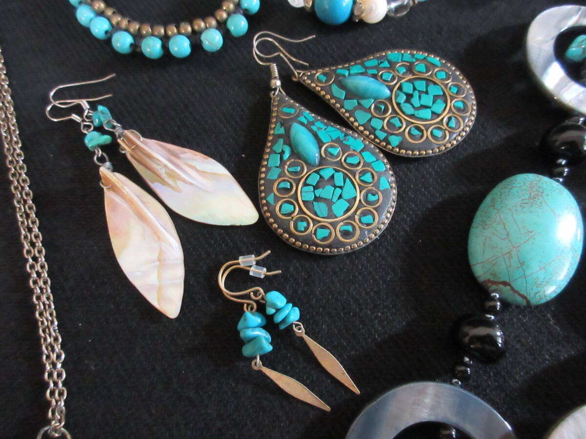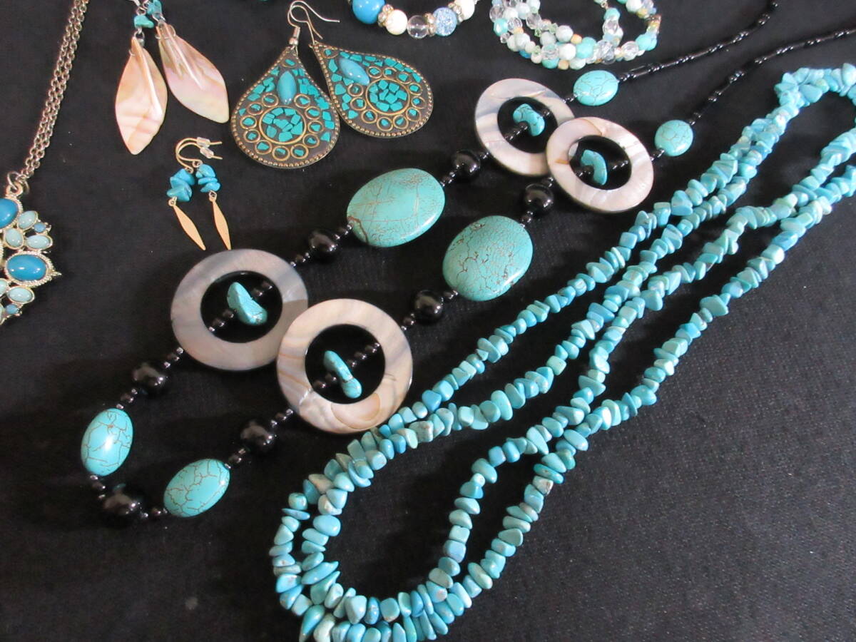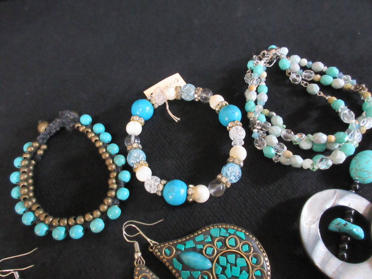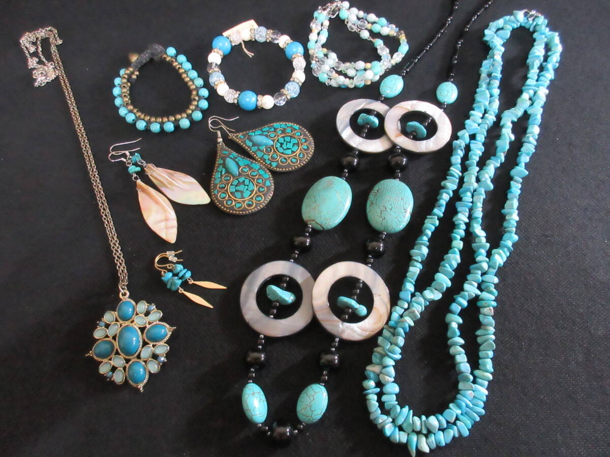 *100円~【天然石】1点タグ付 パワーストーン トルコ石 ターコイズカラー アクセサリー ネックレス/ブレスレット/ピアス 9点セット*M-30