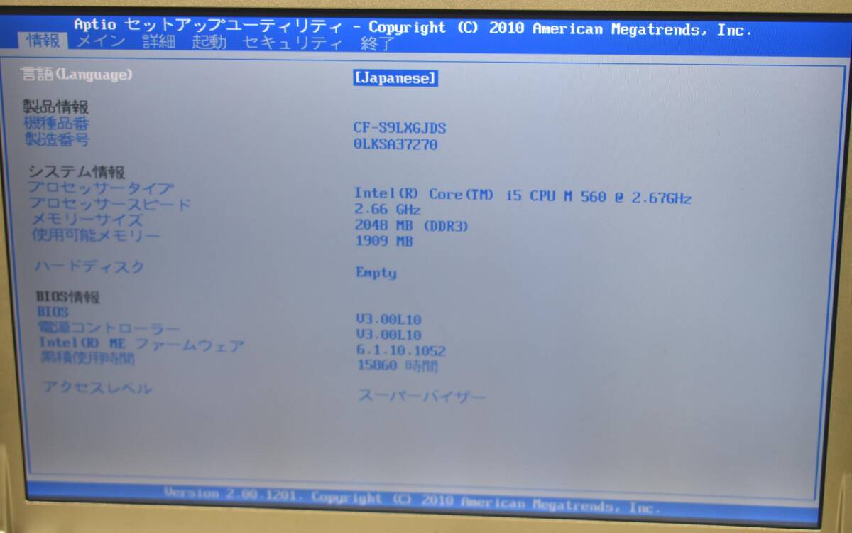 起動確認済み(ジャンク扱い) Panasonic CF-S9LXGJDS CPU:i5-M560 RAM:2G HDD:無し 本体のみ (管:KP1094
