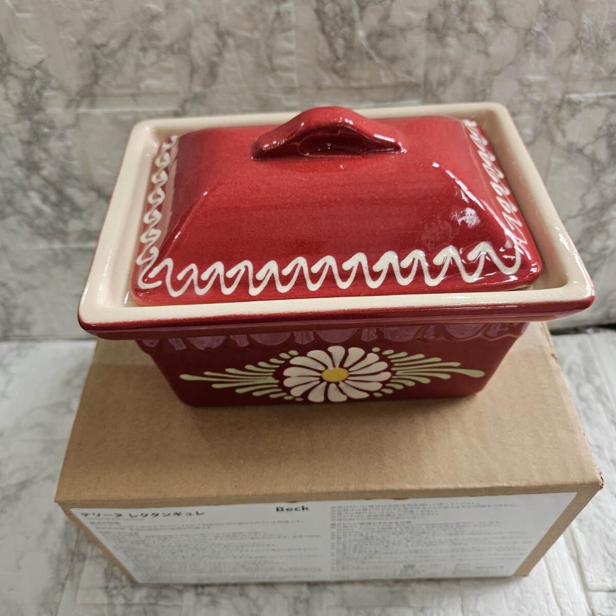 【未使用】テリーヌ レクタンギュレ フランス製 BECK社 レッド 陶器 食器 コレクション
