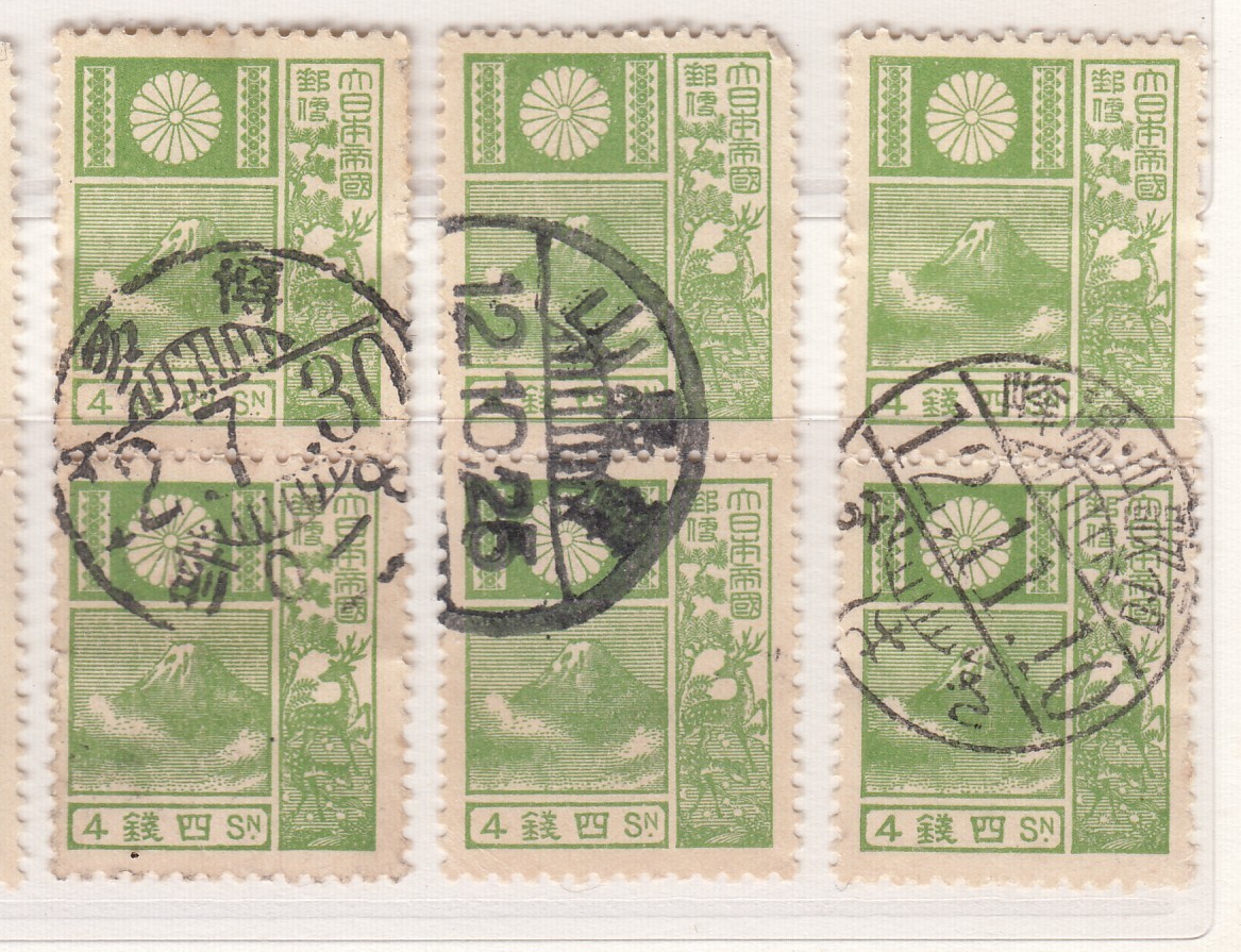 (0261)富士鹿4銭白紙 24枚、縦ペア6組 櫛型印