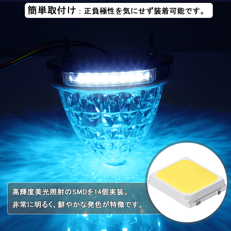 2個セット 24V トラック用 LED マーカーランプ サイド マーカー 8面クリスタルカット 14LED アイスブルー 汎用 防水 無極性 路肩灯 Y630