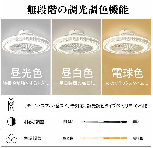 シーリングファン シーリングライト 調光調色 DC おしゃれ ファン付き 軽量 薄型 LED 扇風機 リモコン スマホ 脱衣所 省エネ 50cm (A160)