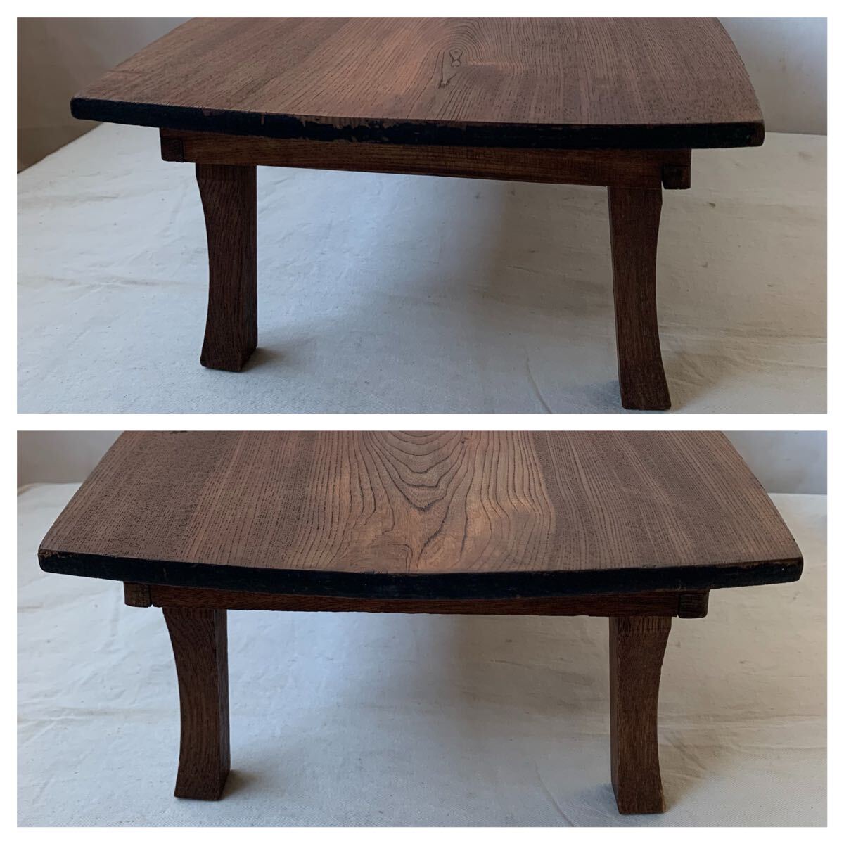 木目が綺麗な一枚板天板の折り畳み式木製ちゃぶ台 昭和レトロ店舗什器インテリアディスプレイ古道具アンティークビンテージ古家具座卓花台