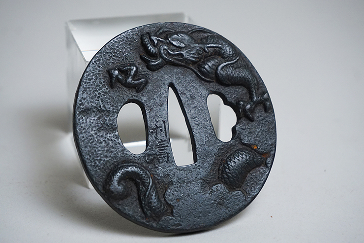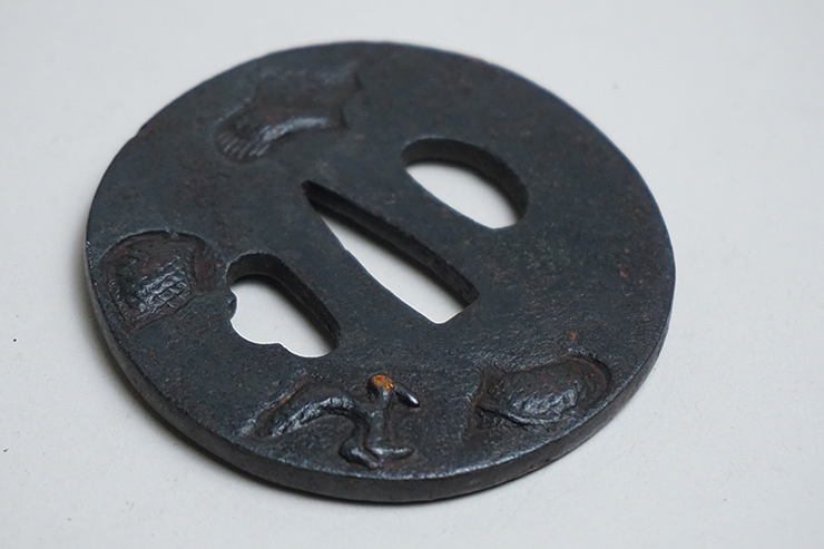 881■鉄鐔 在銘 利壽 時代鍔 脇差 刀剣 武具 金具
