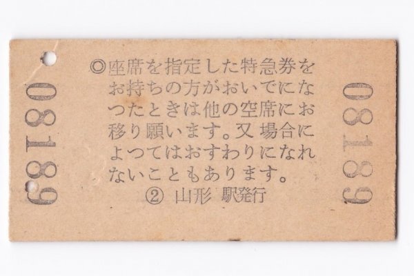 ●国鉄●【第1つばさ・第2つばさ 自由席特急券 山形→秋田 400円 (区間固定) 】A型券 昭和42年 奥羽本線 山形駅発行【08189】