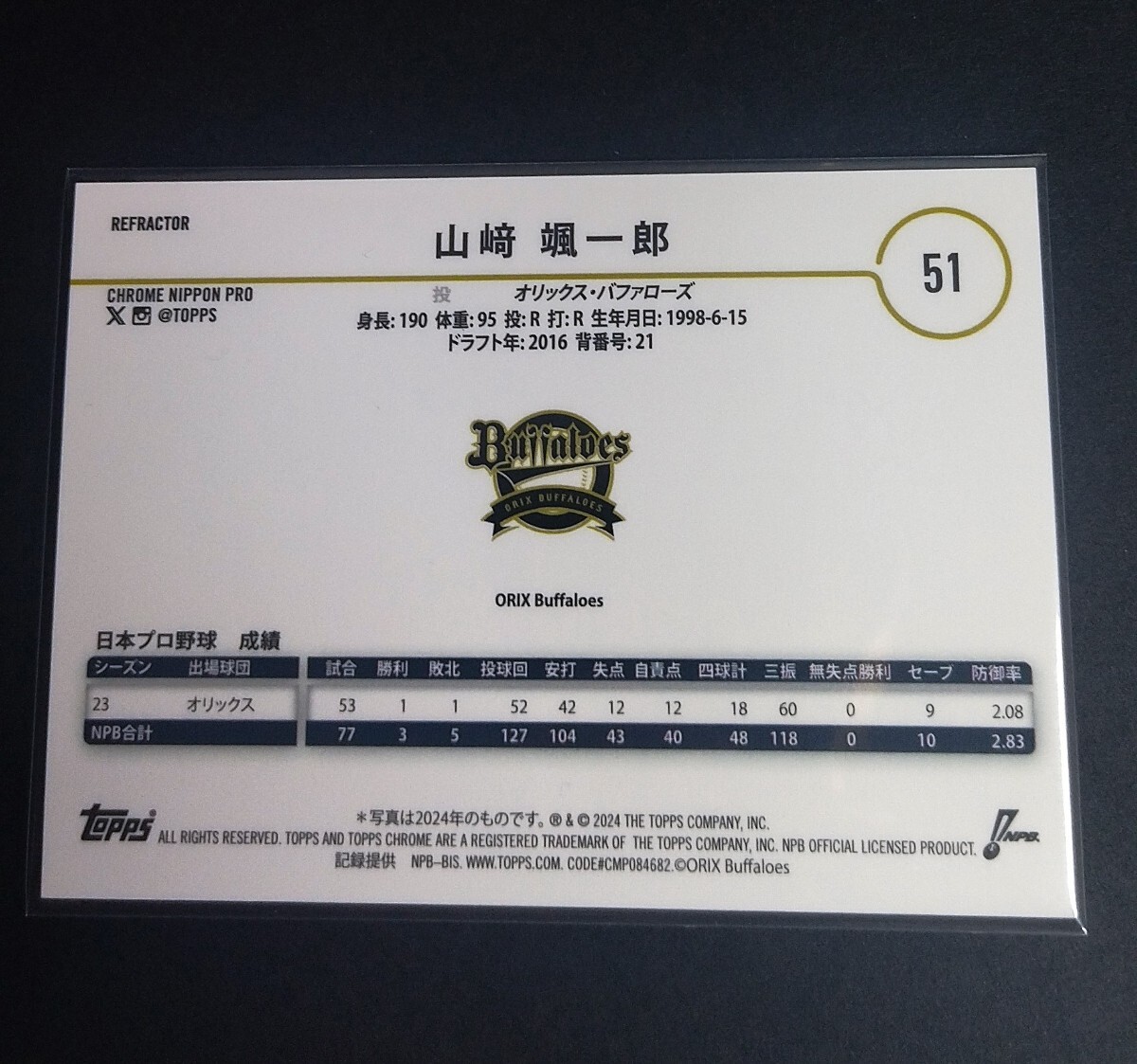 2024年topps chrome NPB 山﨑颯一郎(オリックス)リフラクター! No,51。Refractor