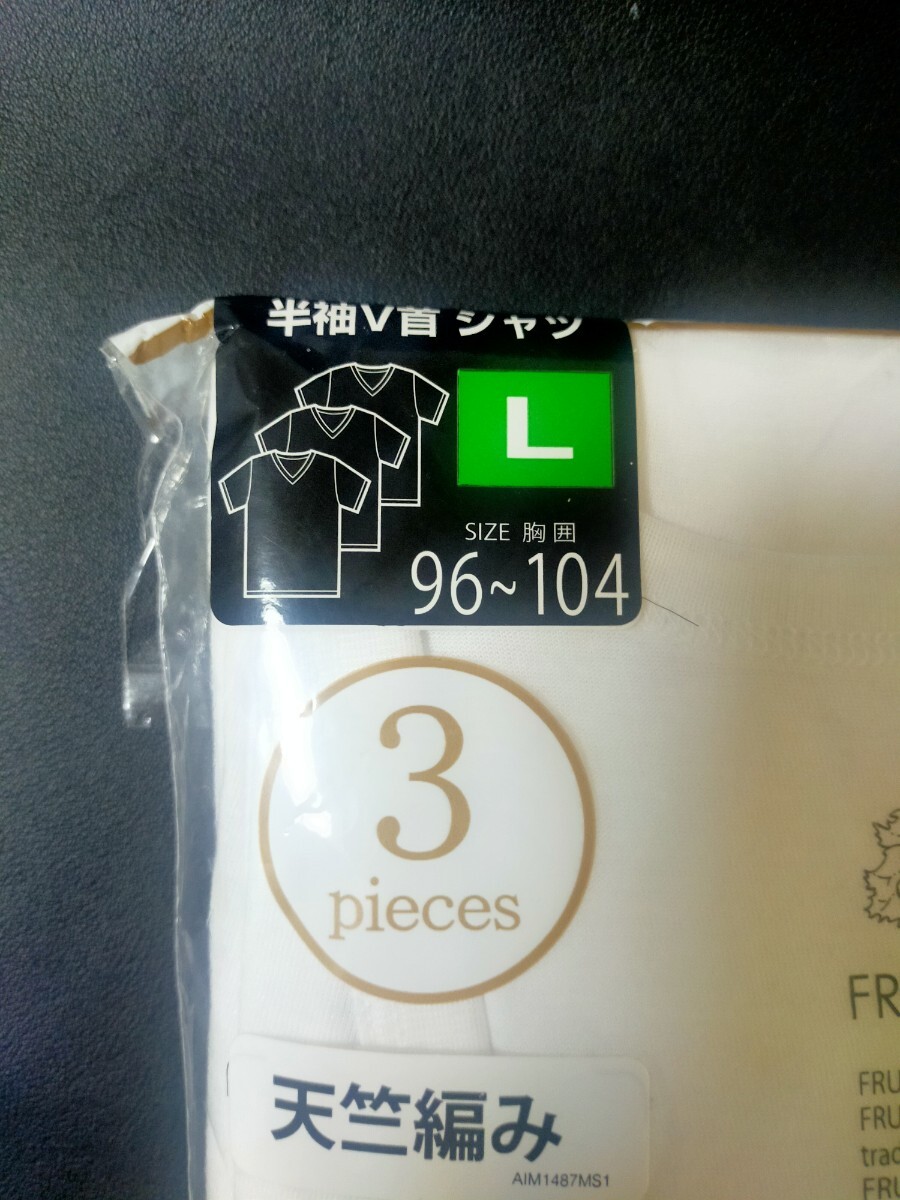 Lサイズ 即決!送料無料!3枚組 インナー Tシャツ FRUIT OF THE LOOM フルーツ オブ ザルーム 肌着 下着 ビジネスシャツ Vネック 白 無地
