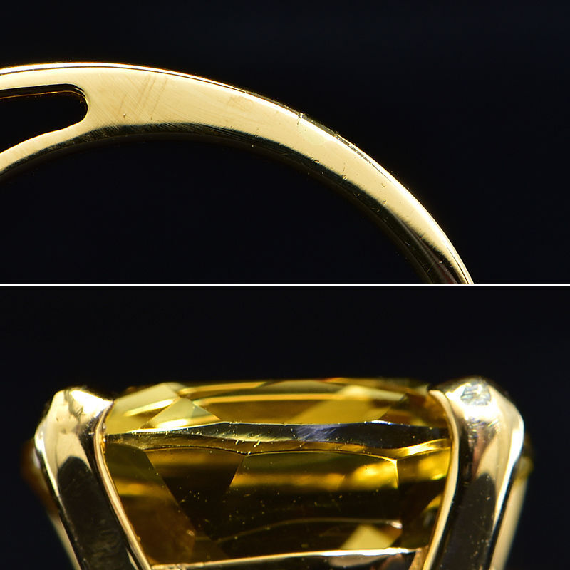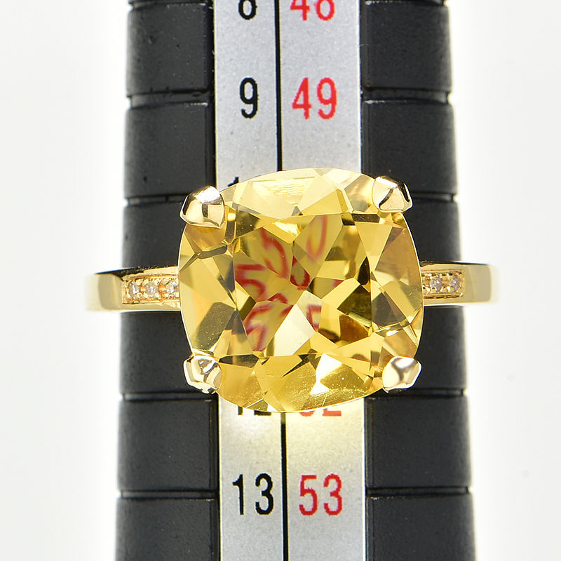 モーブッサン ジョリ・プチ・ミノワリング 11号 K18YG シトリン ダイヤモンド クッションカット イエローゴールド 地金2.6g 中古 送料無料