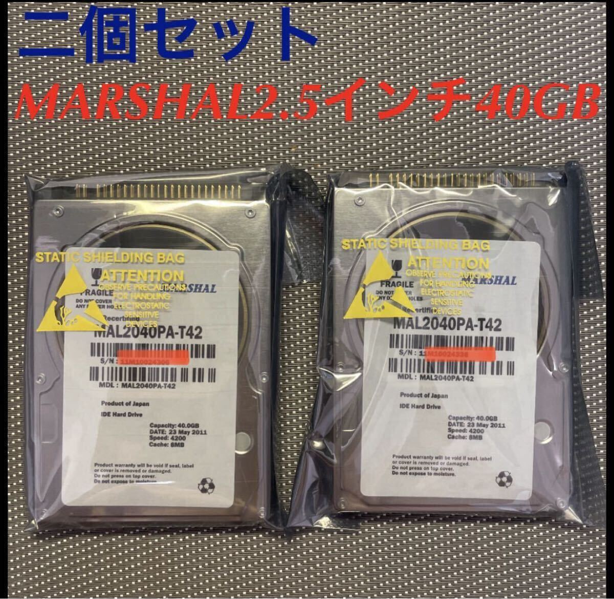 MARSHAL製ハードディスク MAL2040PA-T42 40GB 消費電力 2.5 2.5inch HDD ATA IDE PATA 4200rpm/メーカー再生品/二個セット