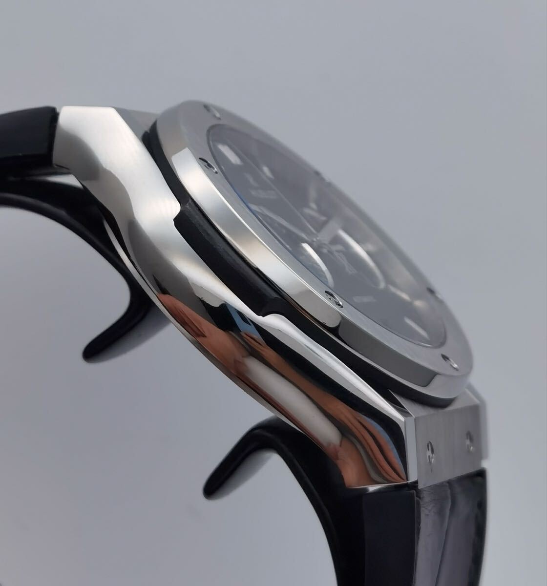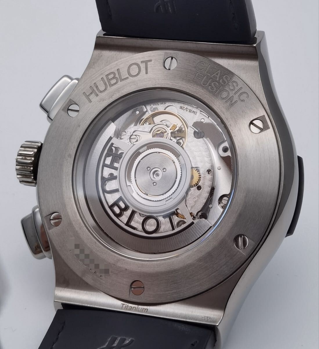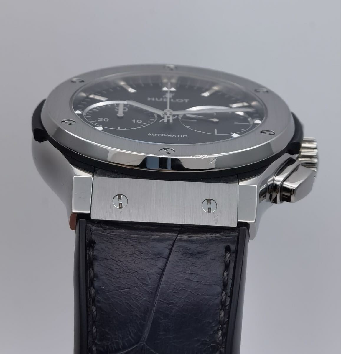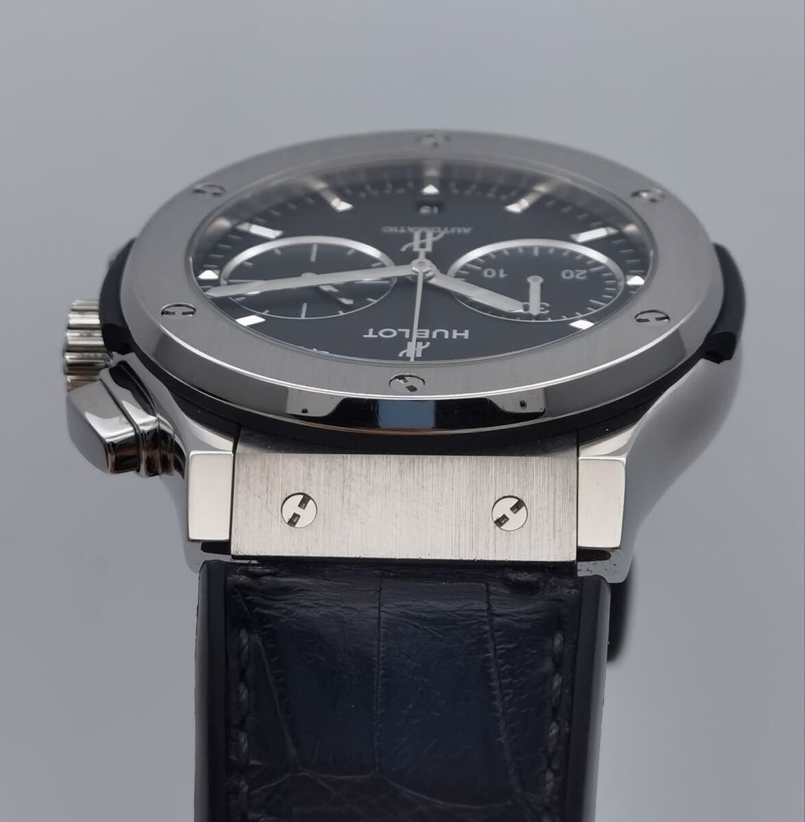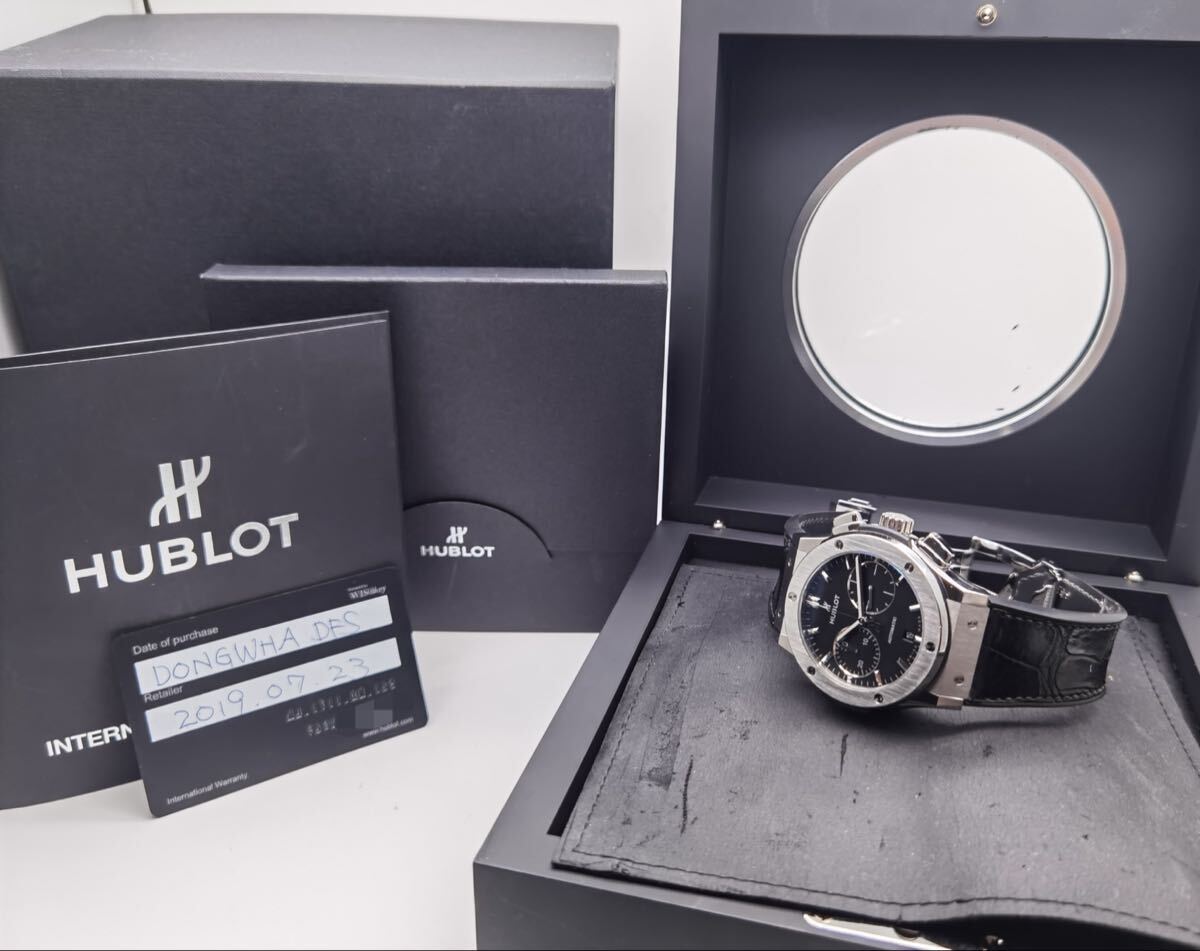 中古 保証書付き ウブロ HUBLOT クラシックフュージョン 521.NX.1171.LR クロノグラフ デイト チタニウム ブラック 自動巻き メンズ 腕時計
