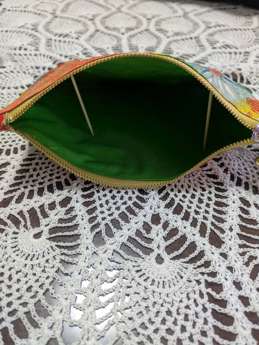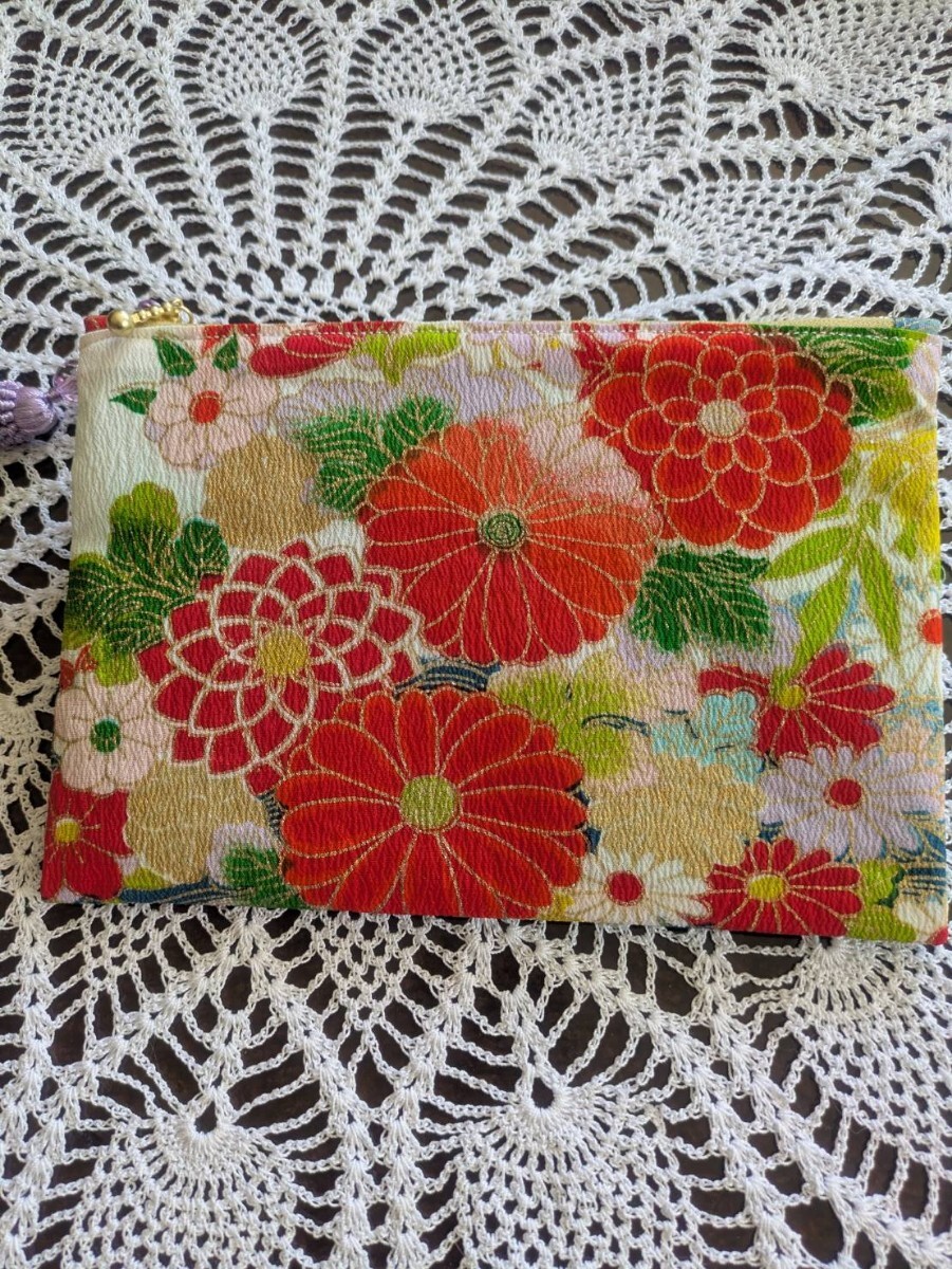 ハンドメイド ファスナー付きポーチ 通帳入れ 母子手帳入れ 白地に花柄