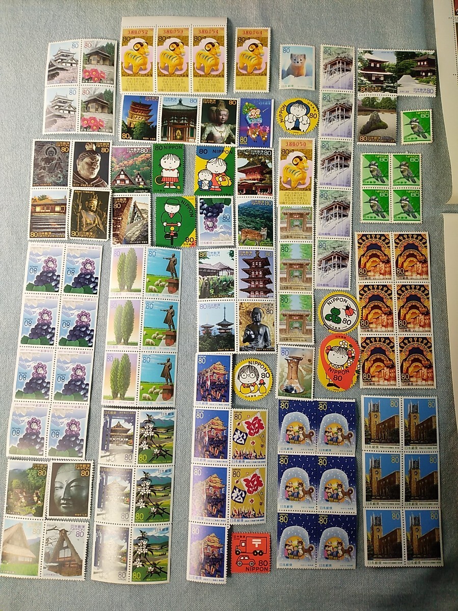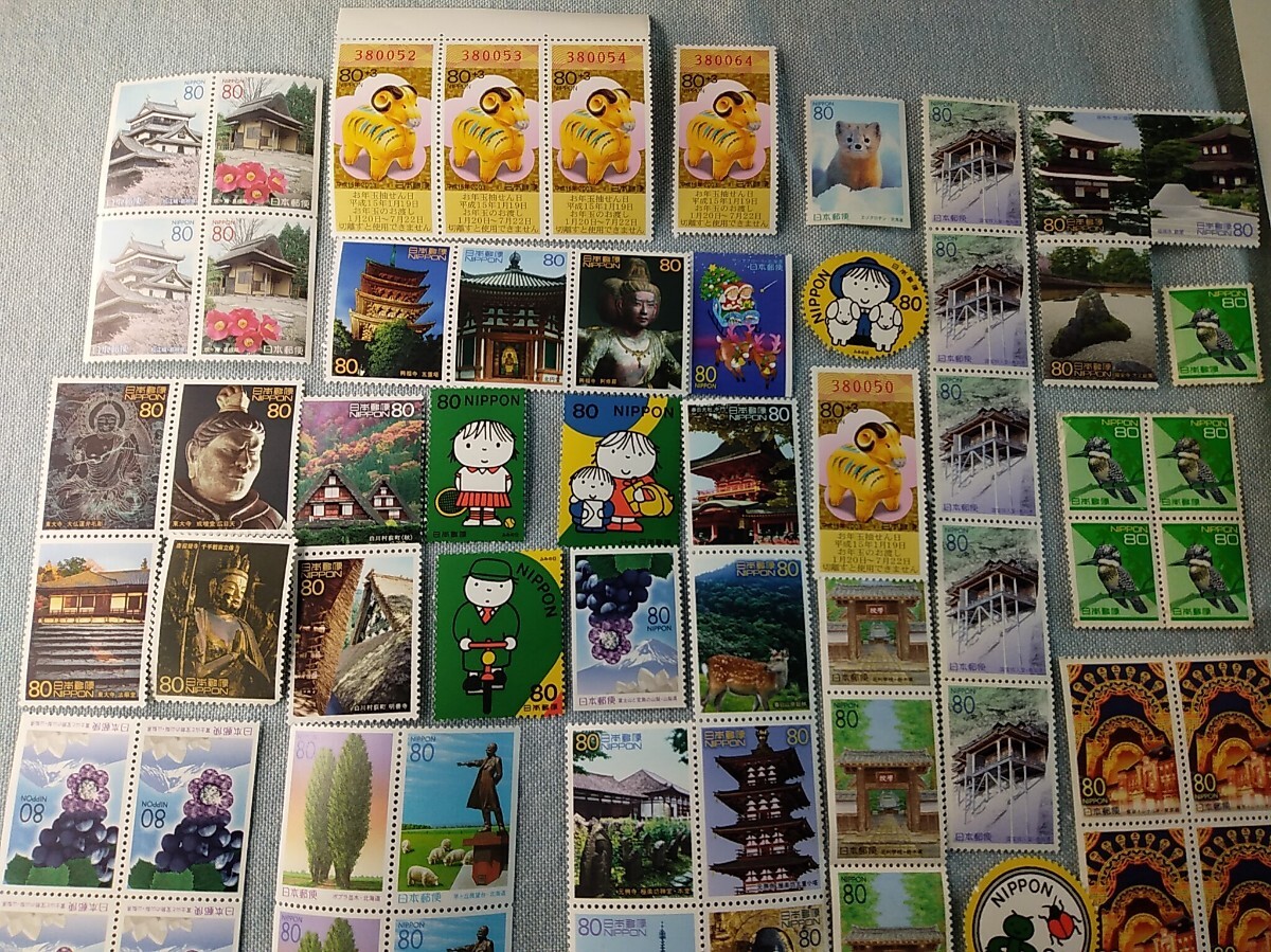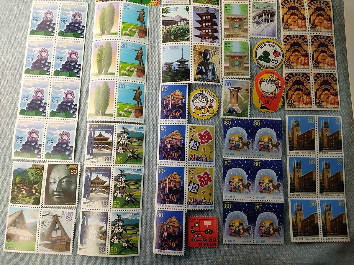 未使用 80円×100 20円×100枚 切手シート 記念切手 普通切手 バラ 200枚 まとめ 額面10000円 日本郵便 お年玉 かまくら ふみの日 寺
