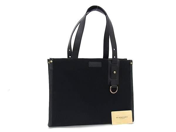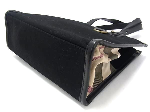 1円 ■美品■ BURBERRY バーバリー キャンバス×レザー チェック柄 ハンドバッグ トートバッグ 肩掛け レディース ブラック系 BP6027