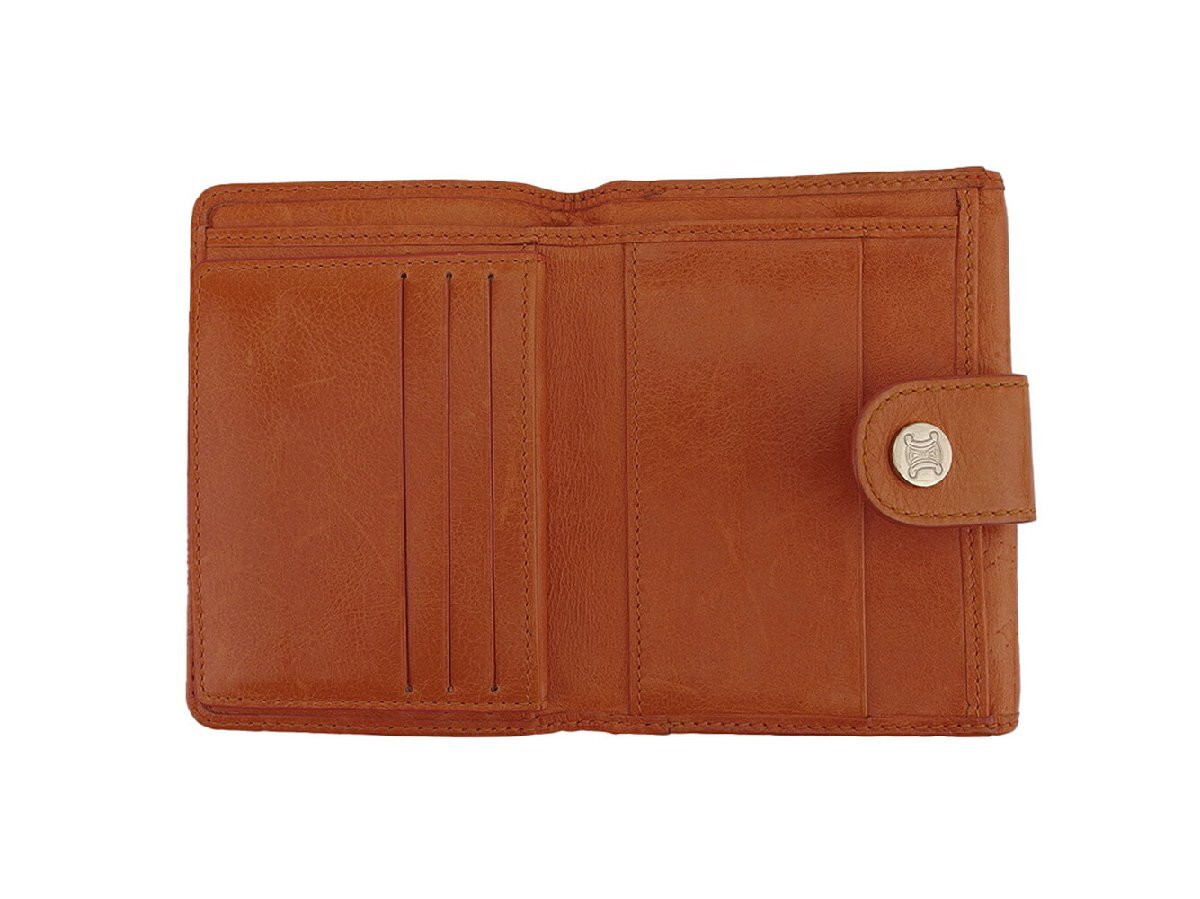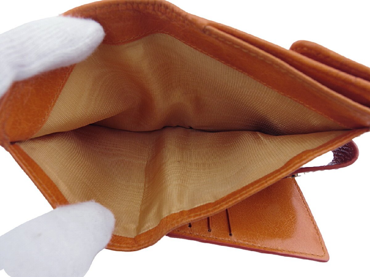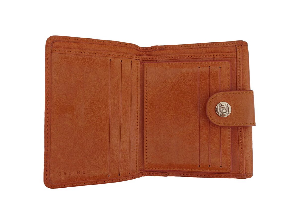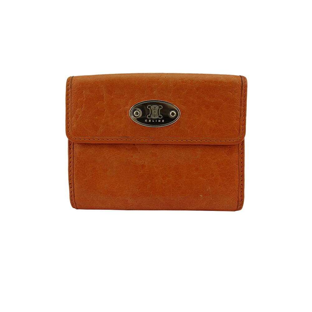 【ブラックフライデー30%OFFクーポン】セリーヌ CELINE 二つ折り財布 トリオンフプレート ロゴプレート オレンジ ゴールド レディース 中古