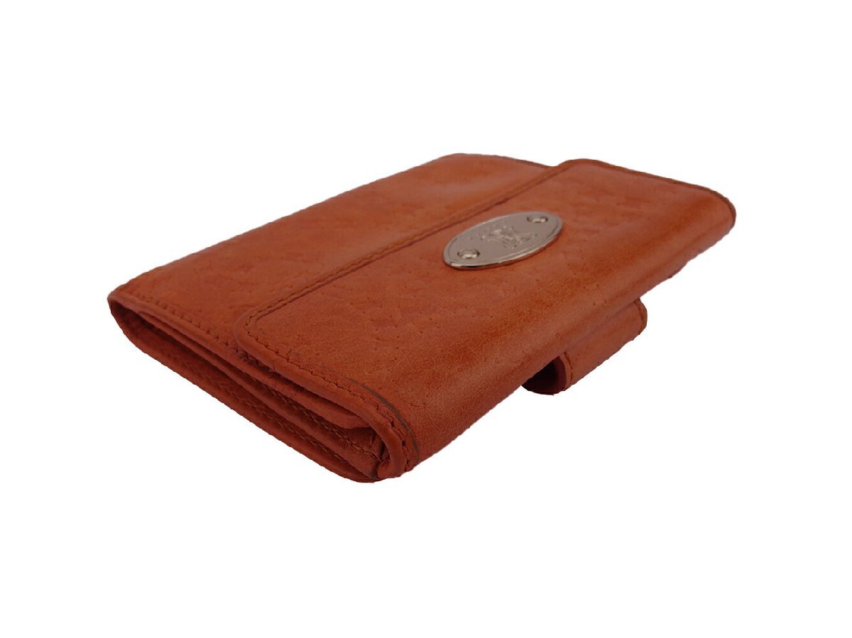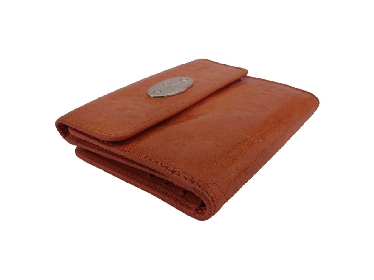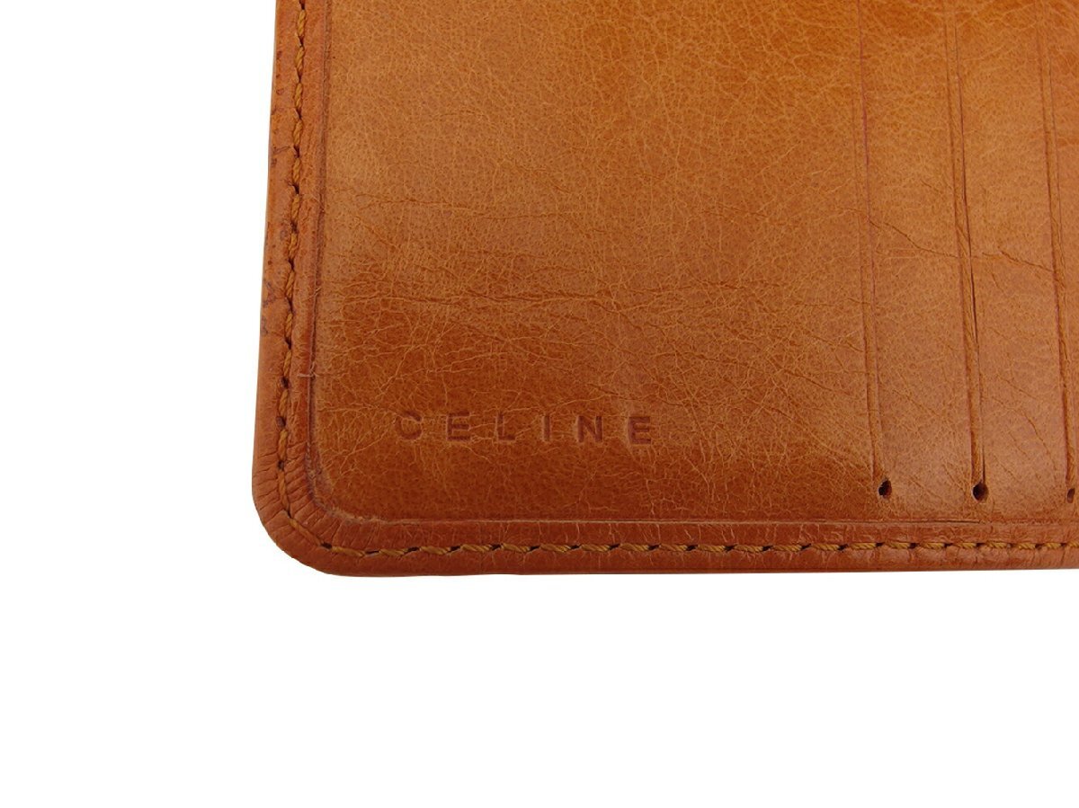 【ブラックフライデー30%OFFクーポン】セリーヌ CELINE 二つ折り財布 トリオンフプレート ロゴプレート オレンジ ゴールド レディース 中古