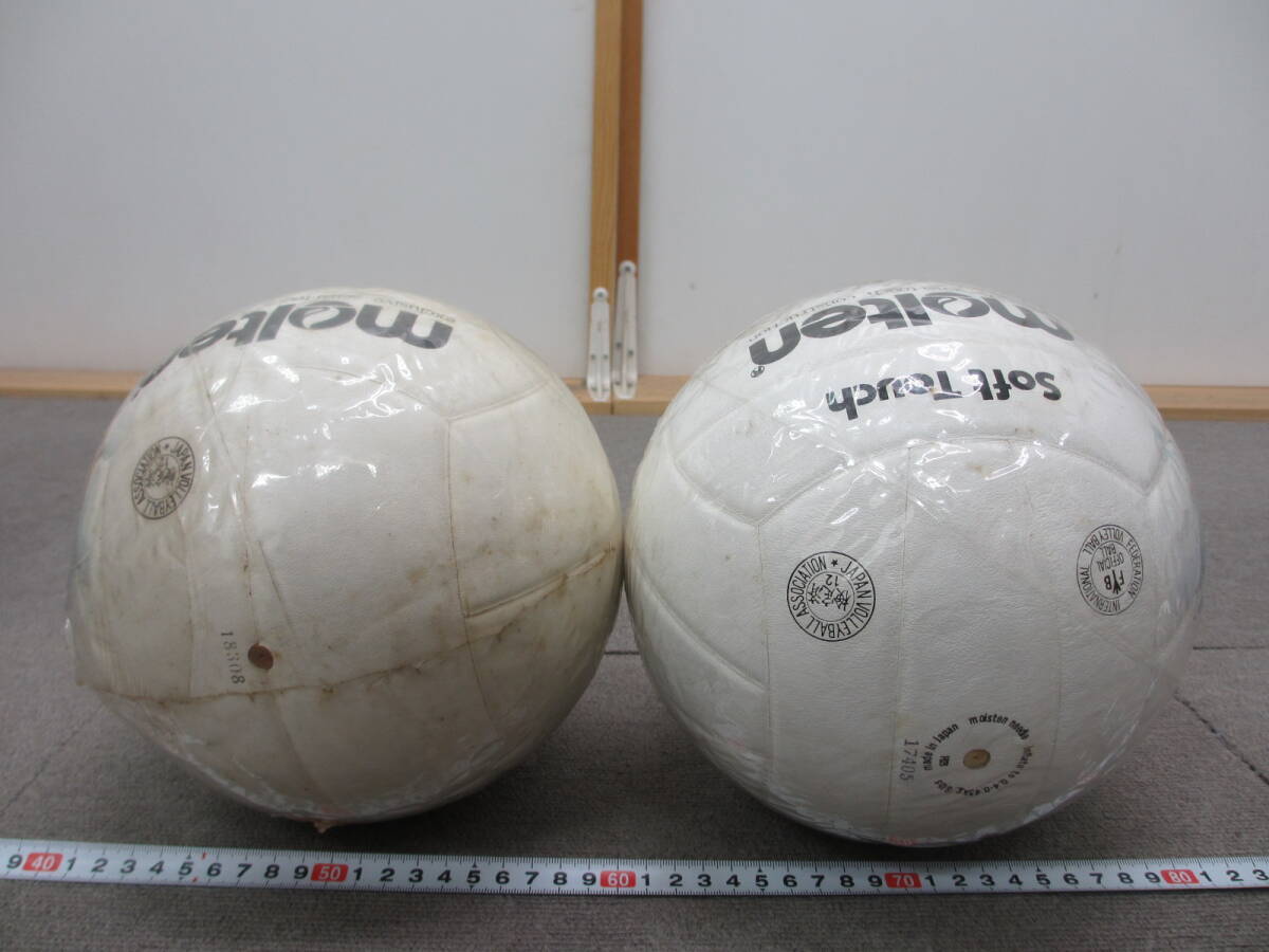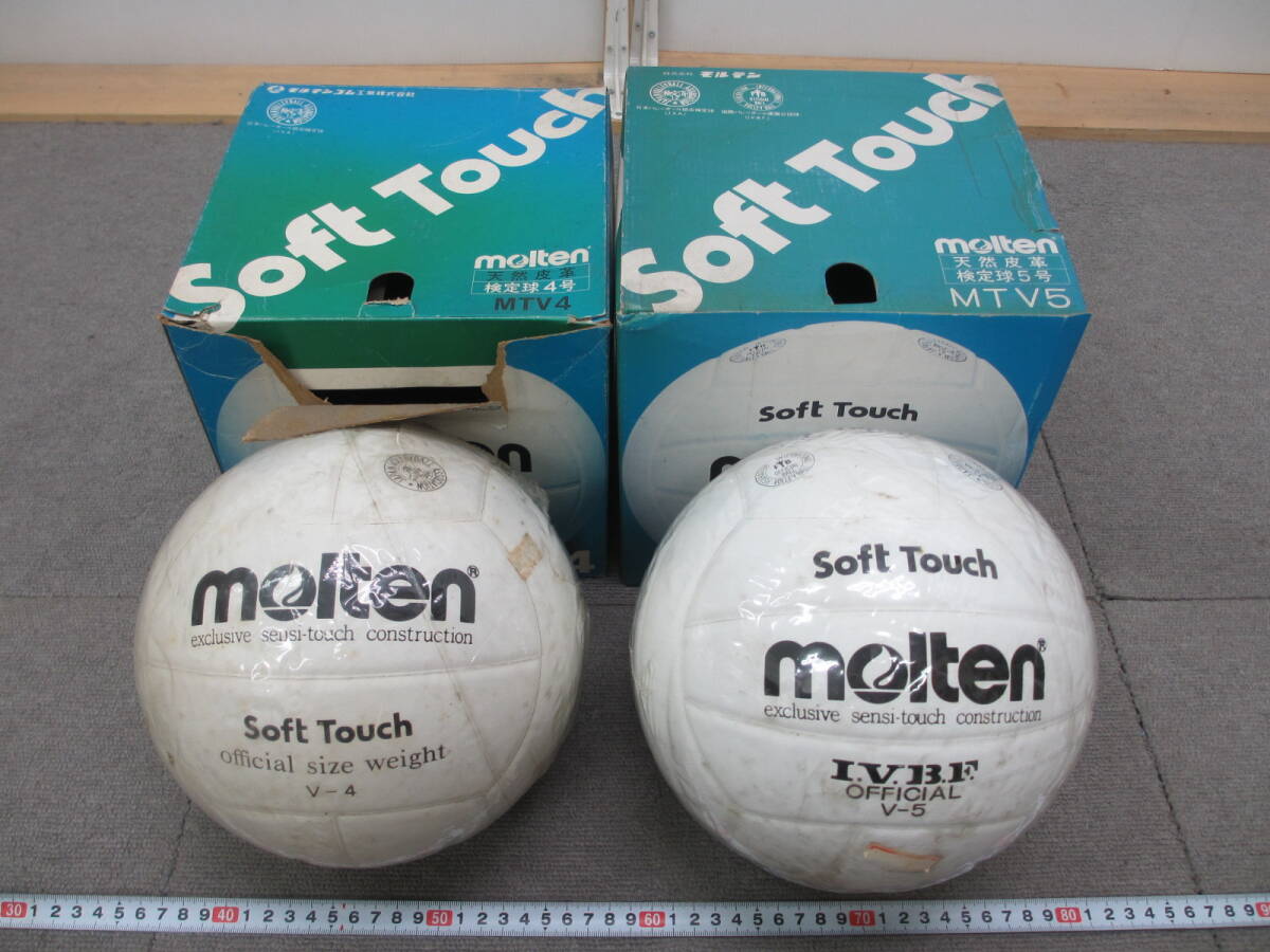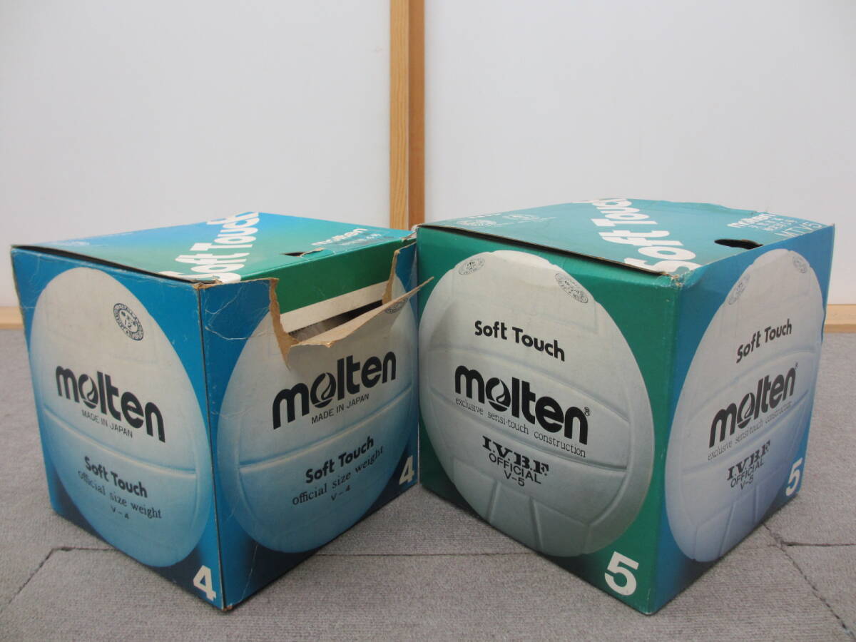 K006【12-3】★ スポーツ店在庫品 molten モルテン バレーボール 2点まとめて MTV4・5 4号・5号 天然皮革 レザー 元箱付き / 11/27
