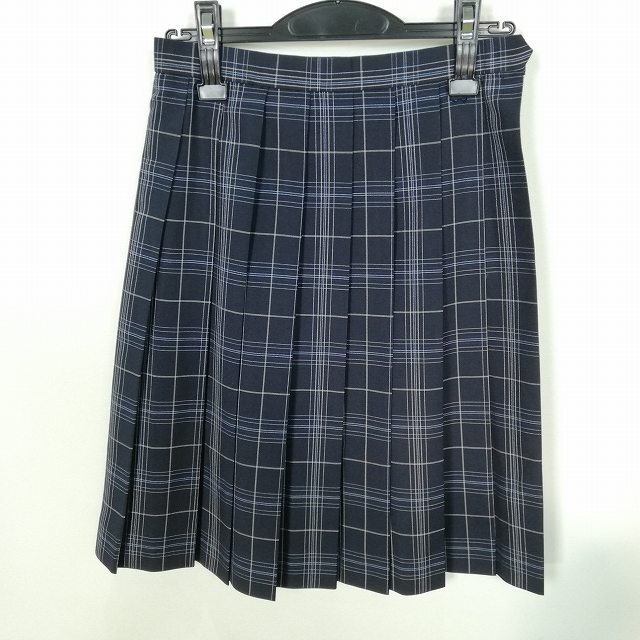 1円 スクールスカート 夏物 w63-丈56 チェック 中学 高校 プリーツ 学生服 制服 女子 中古 HK6170