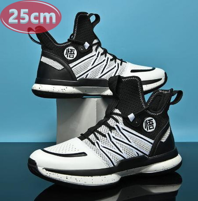 メンズ スニーカー 25.0cm ブラック 靴 シューズ 防滑 バスケットシューズ 通勤 通学 旅行 【172】