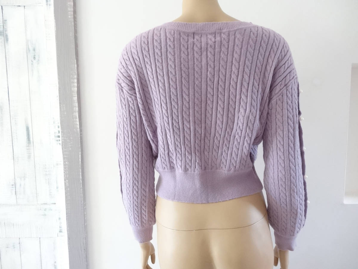 USED【JILL STUART】FREE SIZE - パール風飾り付き ケーブル編み 紫色 ショート丈 ニット セーター ジルスチュアート レディース