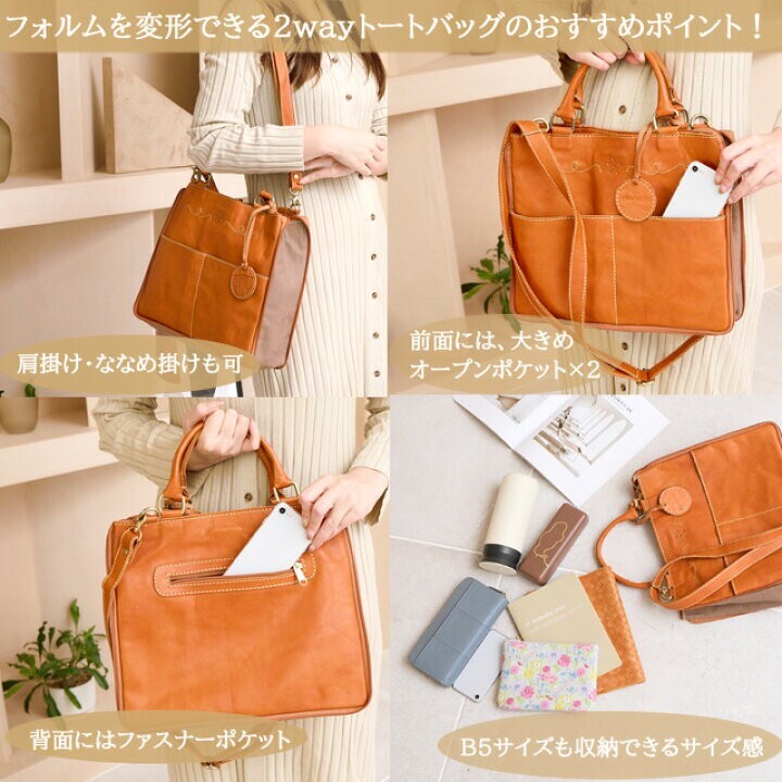 2way トートバッグ ショルダーバッグ レディース ズッケロ フェス 革 レザー 斜めがけ 肩掛け B5サイズ 実用的 サライ 49796