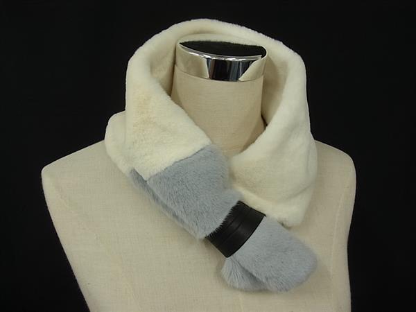 ■新品■未使用■ FURART ファーアート ポリエステル100% ティペット ストール マフラー 防寒具 アイボリー系×グレー系 DG0600