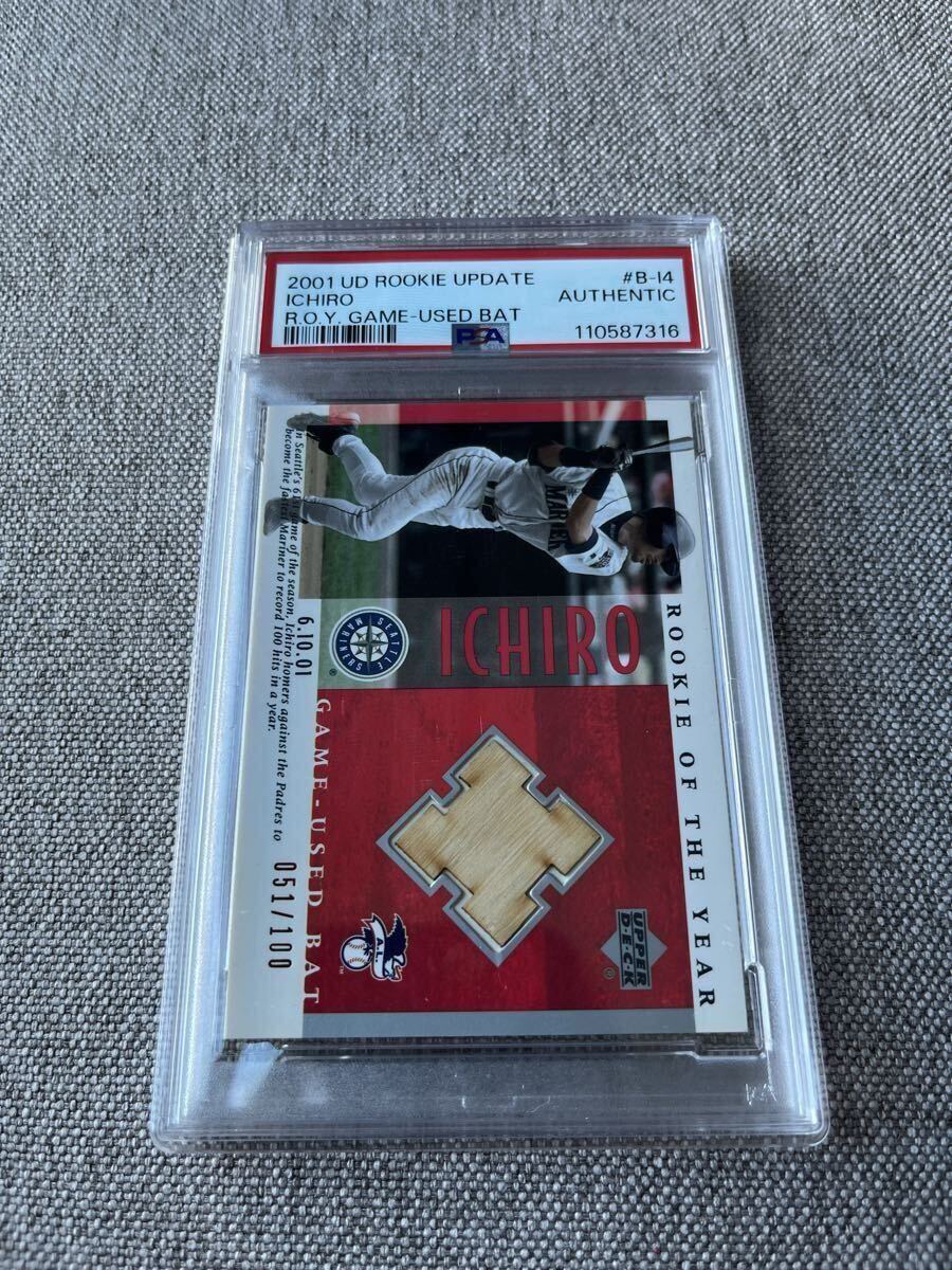 PSA 2001 Upper Deck Rookie Update B-14 R.O.Y Game used bat Ichiro イチロー 051/100 Jersey number ジャージナンバー