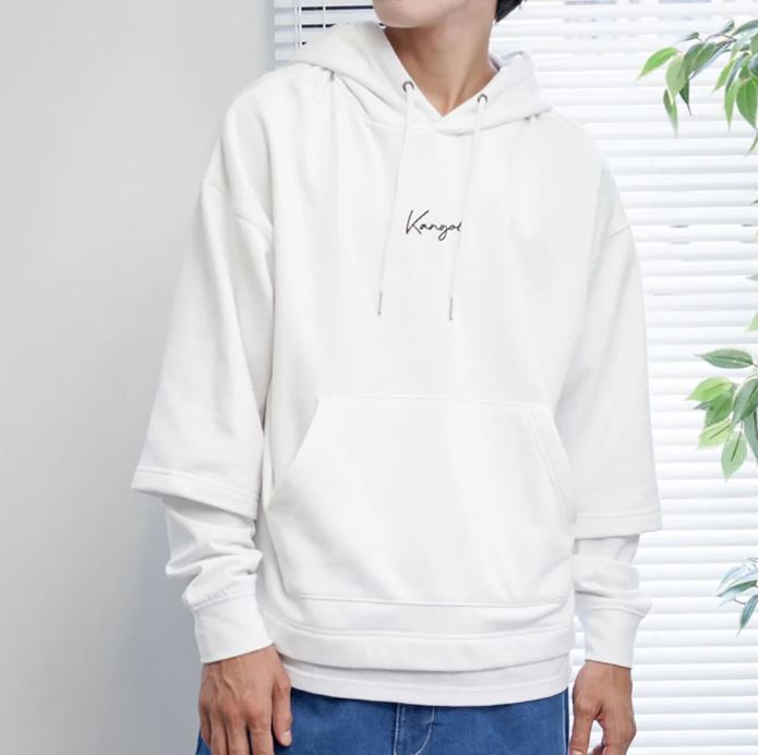 ★カンゴール KANGOL 訳あり メンズ フェイクレイヤード スウェット プルオーバー パーカー 白 Mサイズ [GL49] 一 二 壱★QWER