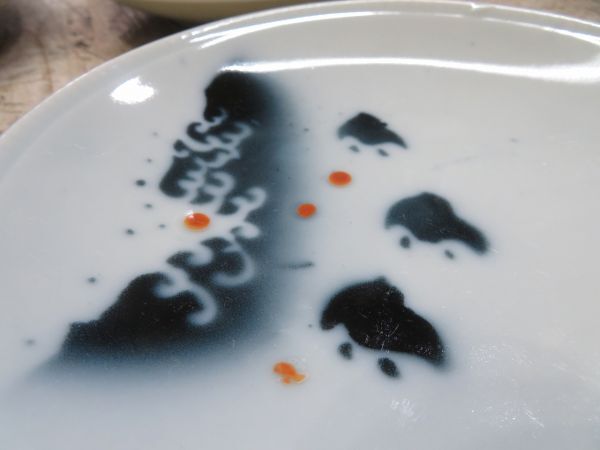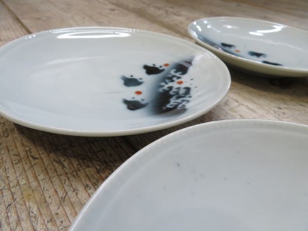 【長期保管品/未使用/良品】 1950年代 日本製 千鳥柄 平皿 4枚 φ162mm 検索用⇒ 昭和レトロ/取り皿/小皿/陶器/和皿/千鳥皿/F1109 #1