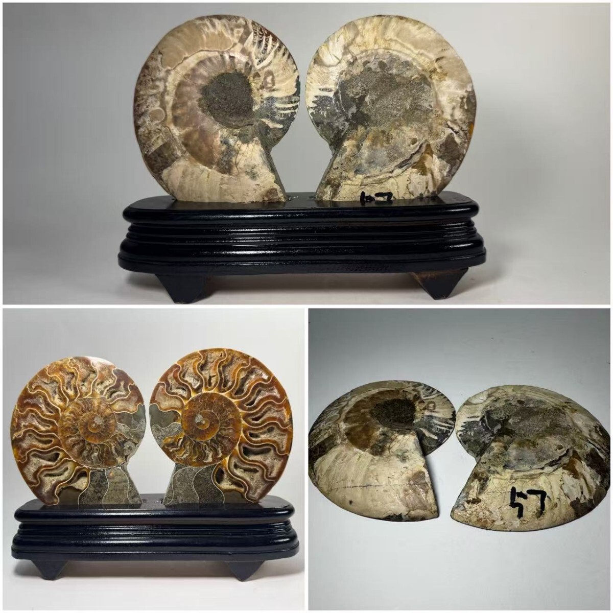 AS192 化石 アンモナイト 台座付 古生物 ペア 置物 標本 H17.5cm