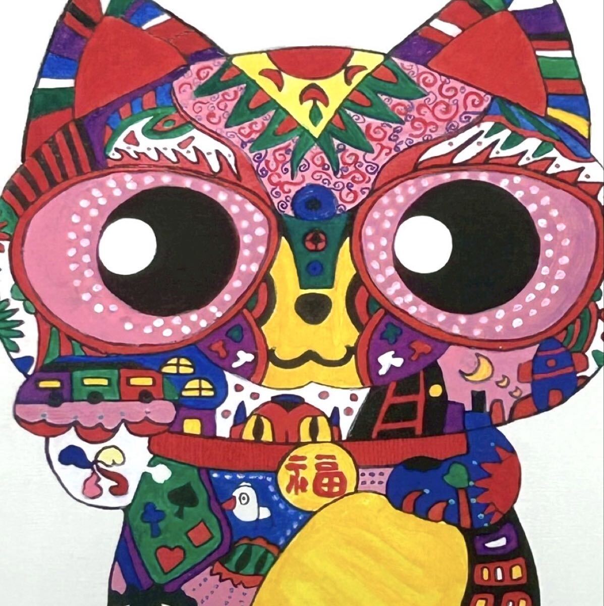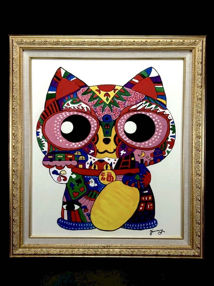 『幽玄』模写 ジミー大西「招きねこ」油彩 10号 裏書 手書作品 招き猫 幸運の絵 010070000