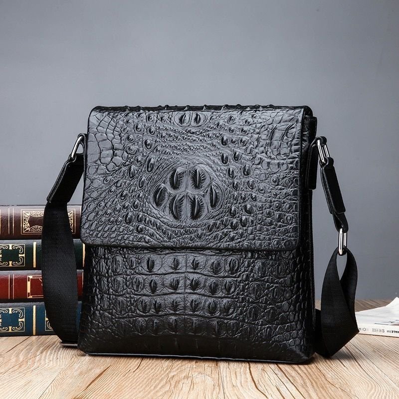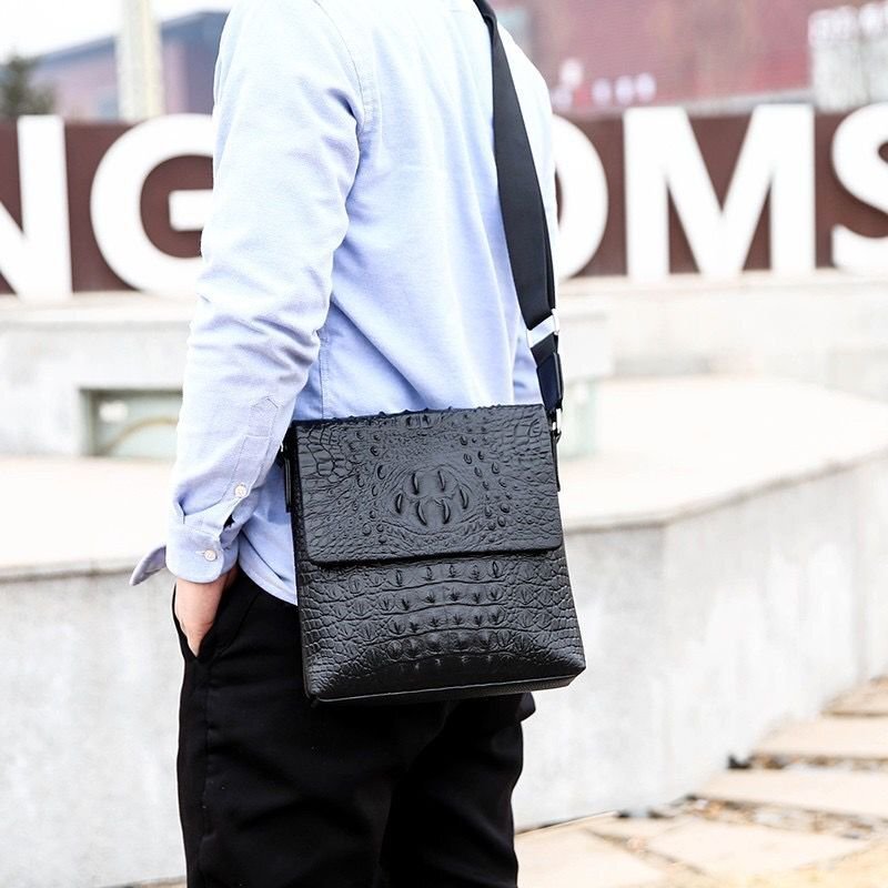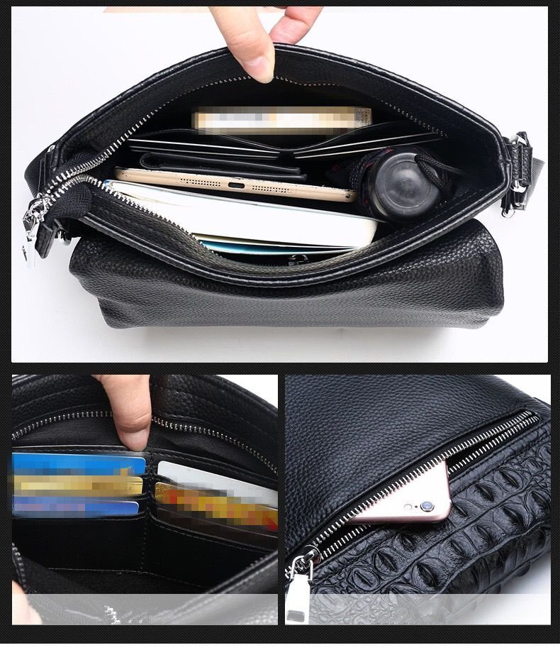 上品 牛革 メンズショルダーバッグ クロコダイル型押し 本革 牛革 斜めがけバッグ ワンショルダー 革 レザー 軽量 大容量 黒 zchw0073