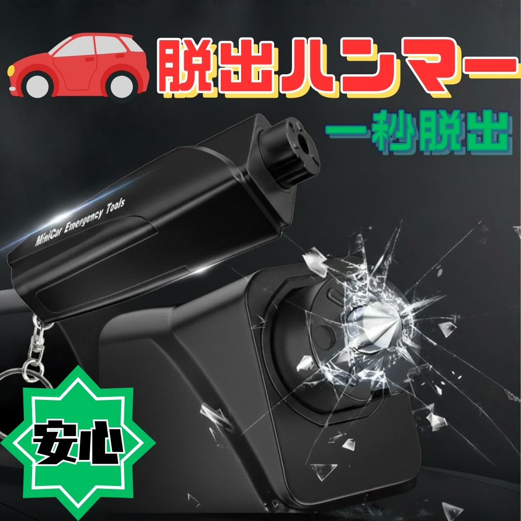 レスキューハンマー 車 脱出 緊急脱出 脱出ハンマー 一秒脱出 水中OK レスキューハンマー 緊急脱出用ハンマー 黒 ブラック