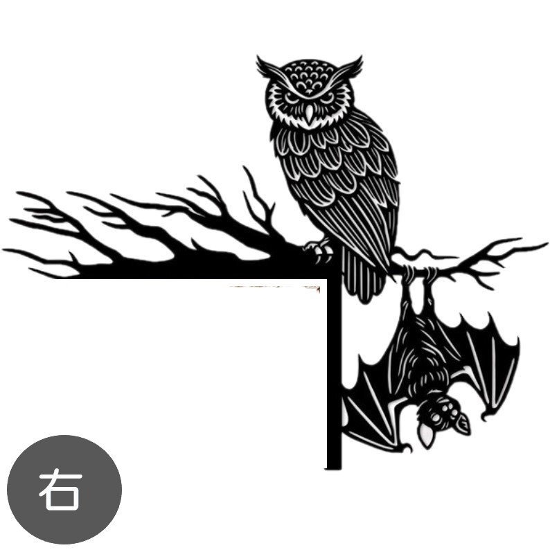 ドア オーナメント フクロウとコウモリ 30cm 右 雑貨 置物 園芸 ガーデン オブジェ 梟 ふくろう ミミズク 蝙蝠 n920