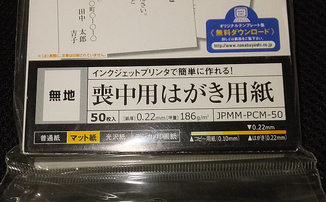 喪中はがき 用紙 枠付き 枠無し 二種類あり インクジェットプリンターで簡単に作れる マット紙