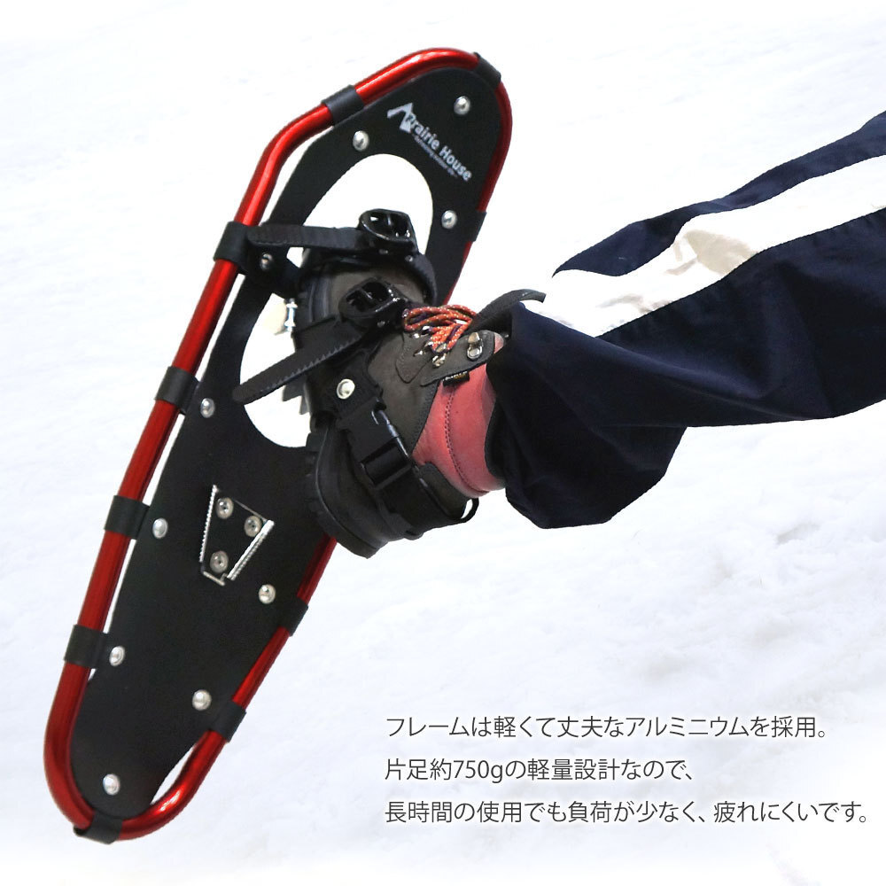 2点セット スノーシュー トレッキングポール アルミ 軽量 冬山 登山 Prairie House スノーシュー青 ポール赤95~110cm XO824XO835LR1