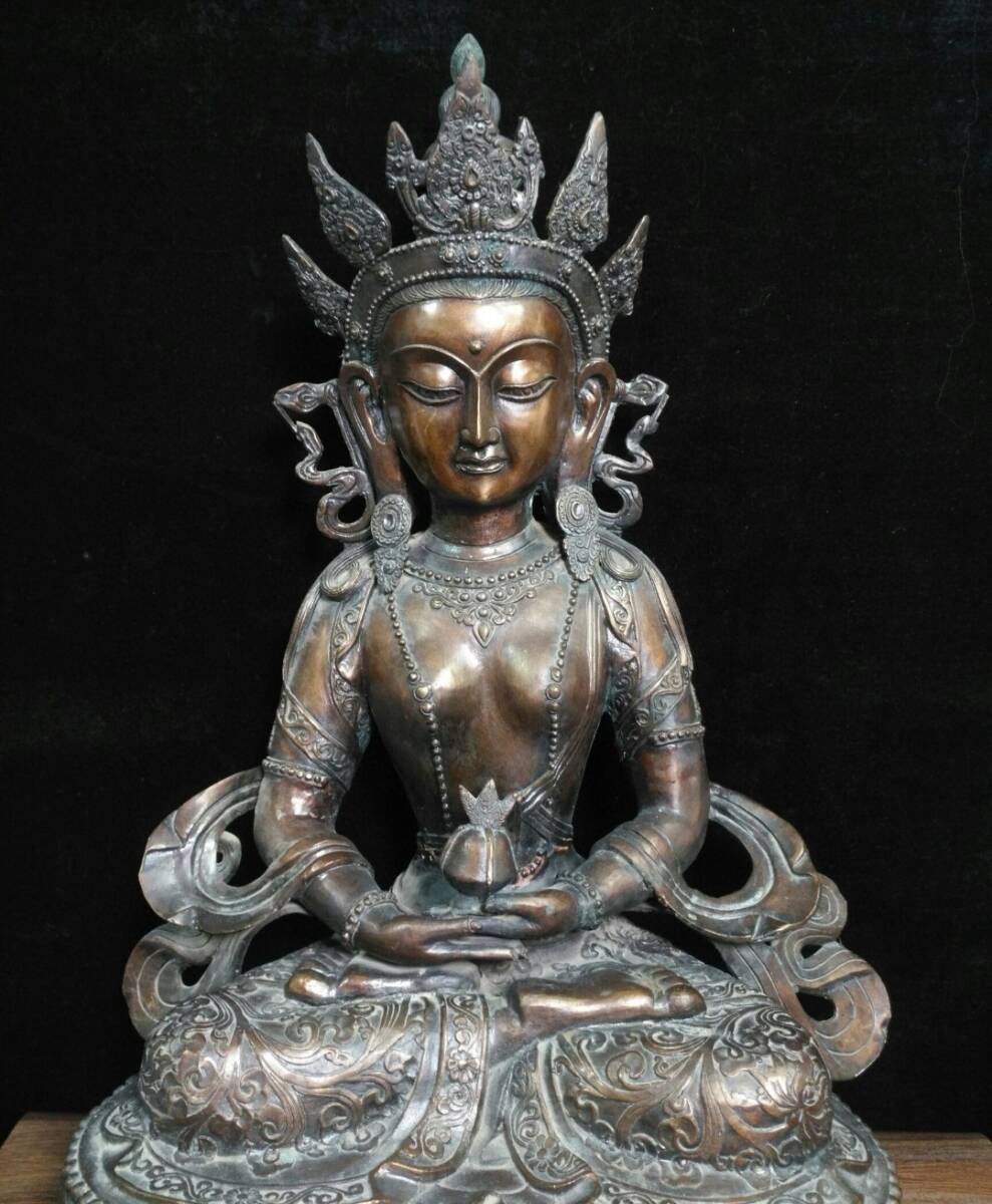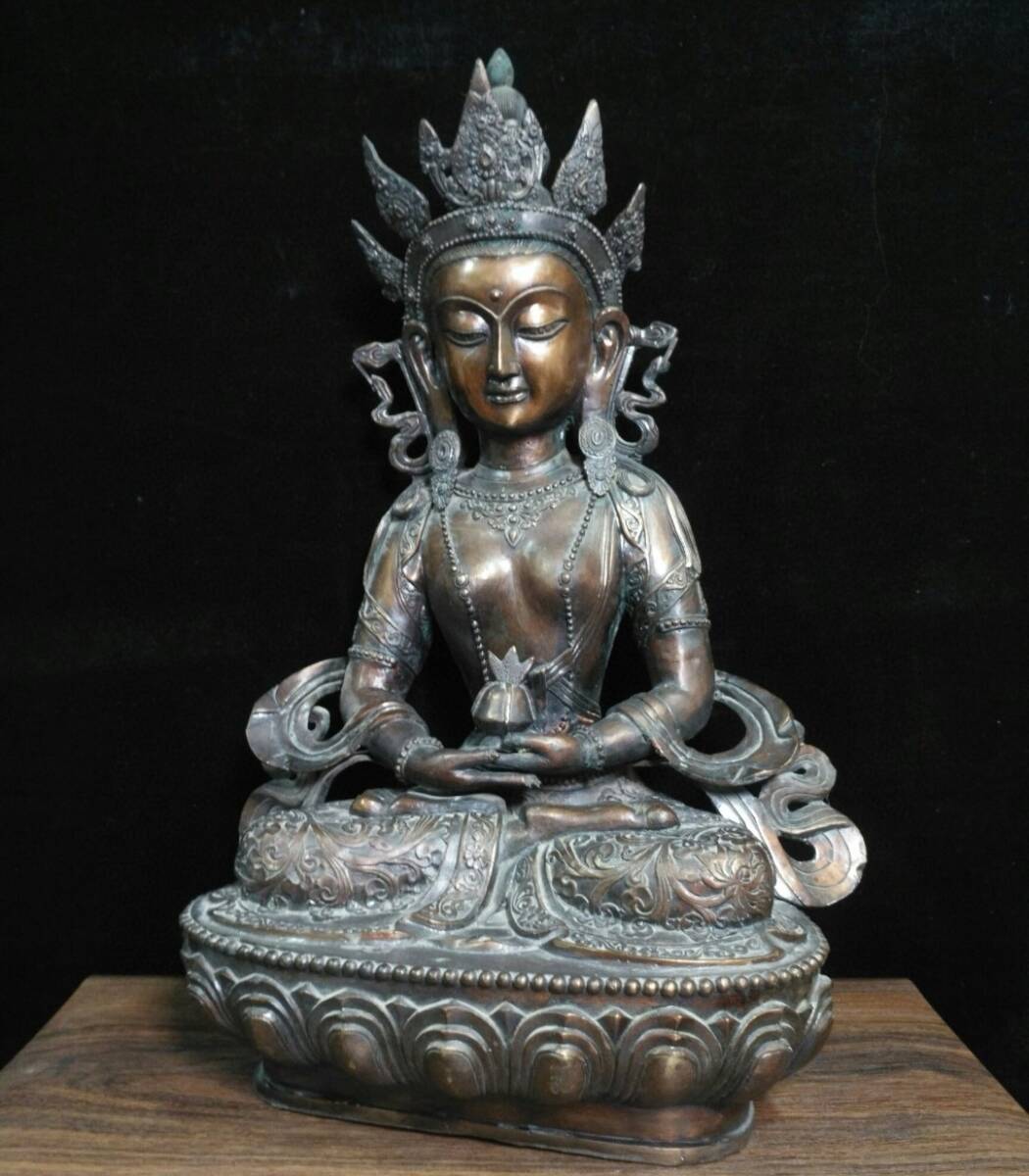 旧蔵 明 宣德年製 大判仏像-高さ65 cm純銅 《長壽仏》藏傳仏教 一面二臂 托長壽寶瓶 象征福壽吉祥 仏像 奉納されていた 中国古玩 201-13