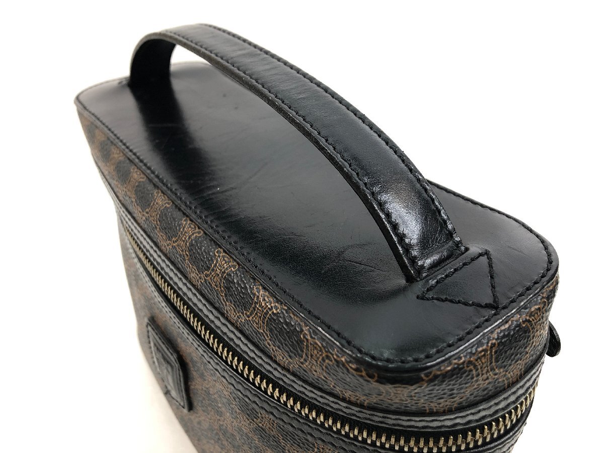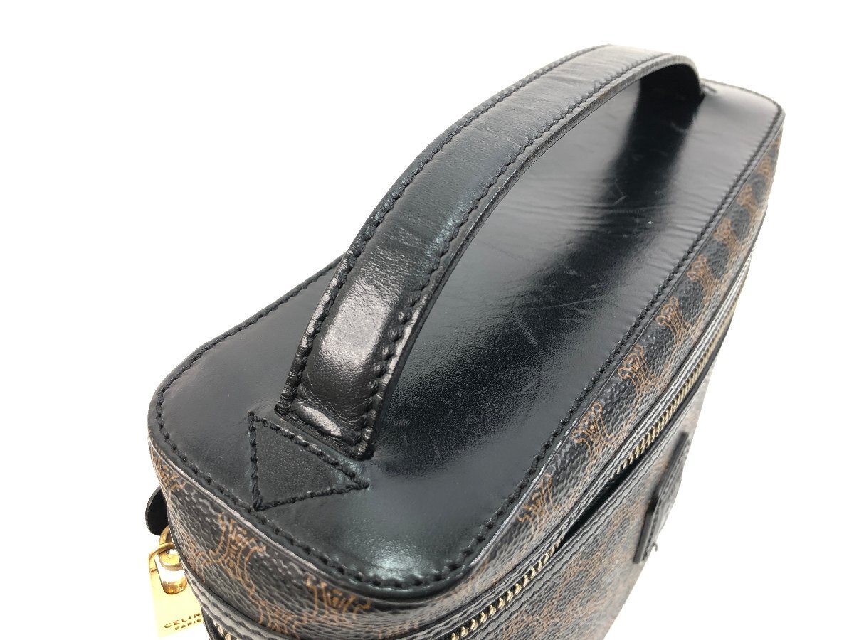 美品 CELINE セリーヌ マカダム柄 バニティバッグ 黒 ブラック PVC レザー ハンドバッグ ポーチ 元箱付 S10-06