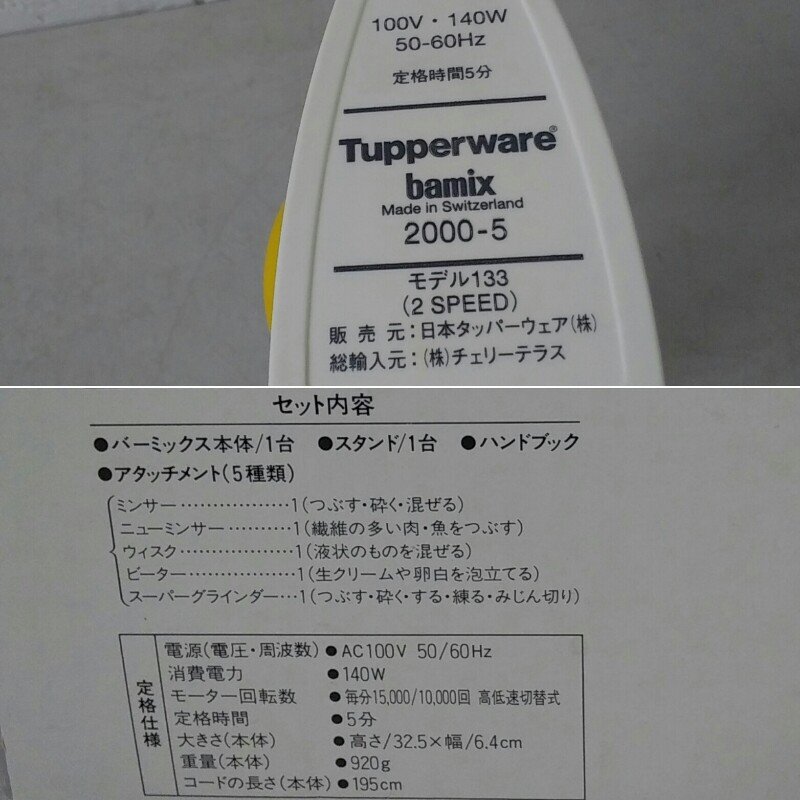 Tupperware タッパーウェア bamix バーミックス 133 ハンディ フードプロセッサー 2 SPEED 2000年製