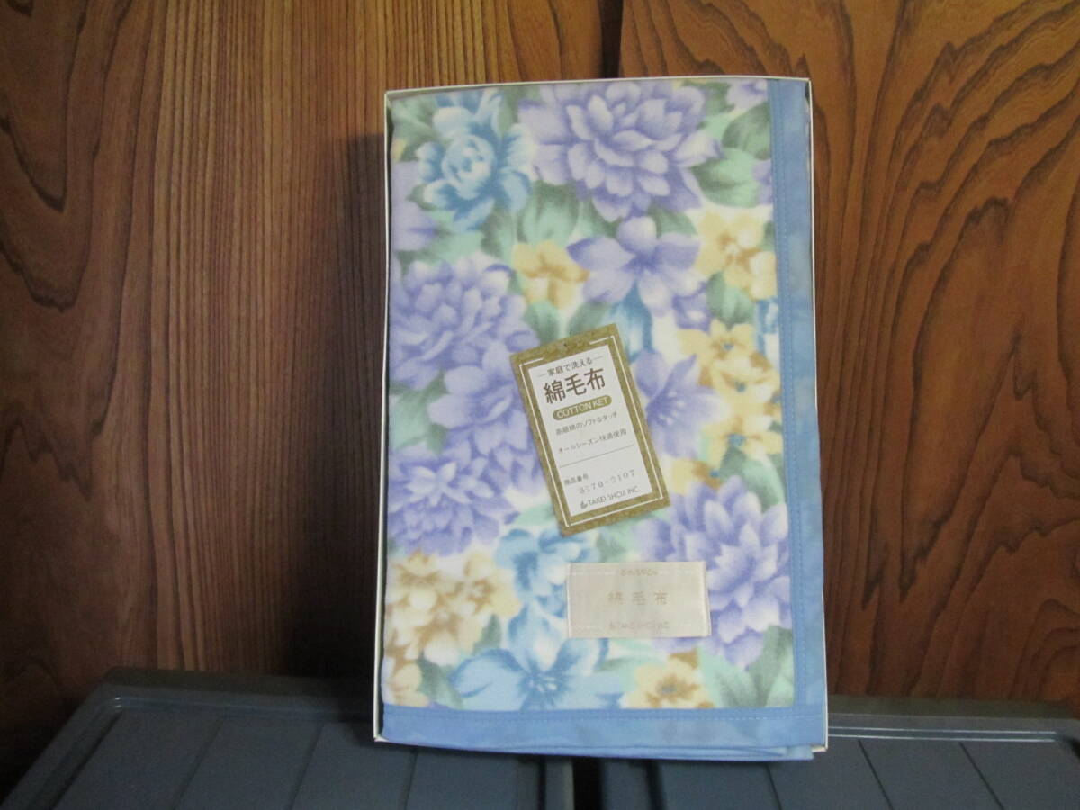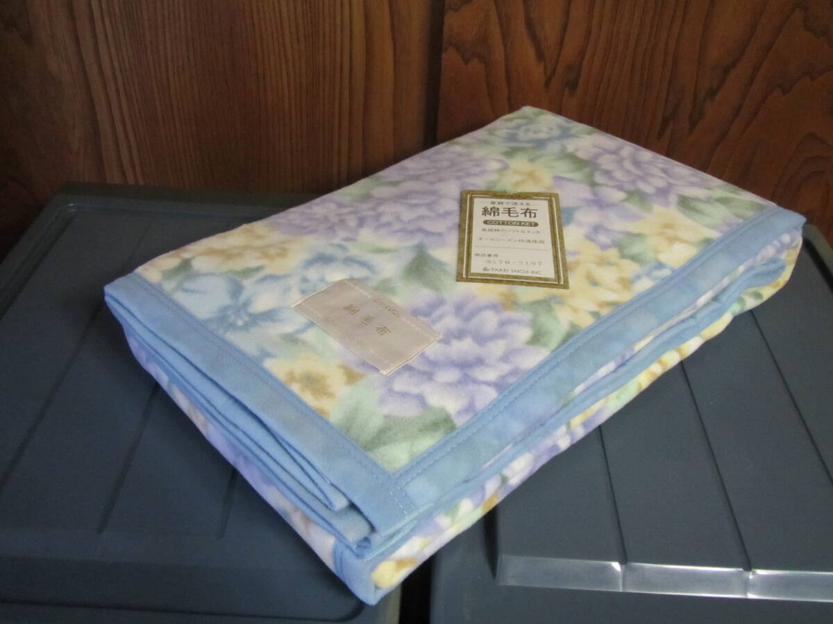 未展開 未使用 オールシーズン 家庭で洗える綿毛布 (ブルー花柄)140×200cm 日本製 TAKEI商事 専用箱付き 送料込み 仕舞いヨゴレ有