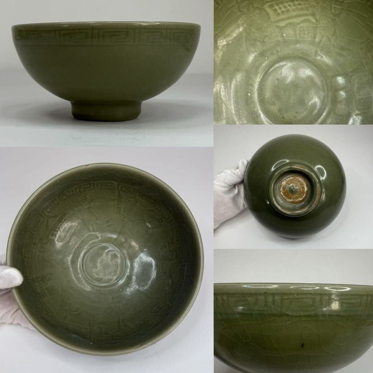 X-中国古美術 時代物 青磁 龍泉窯 茶道具 抹茶碗 茶碗 文字図 唐物 陶磁器 中国古玩 骨董品