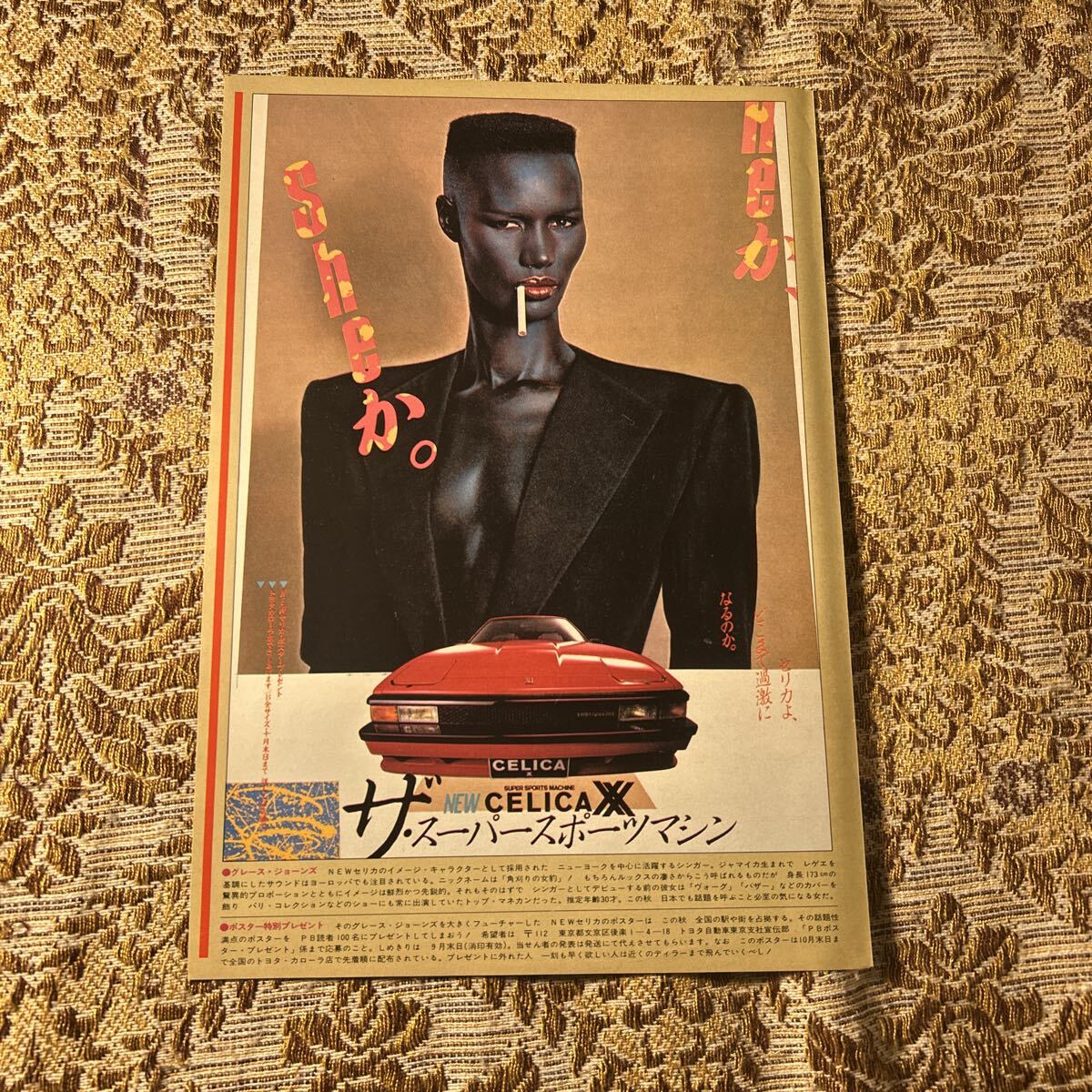 極希少! グレースジョーンズ × CELICA 貴重広告 切り抜き 1P B5サイズ 1983年/セリカ/昭和レトロ/ポスター風デザイン/プレイボーイ/m6m9