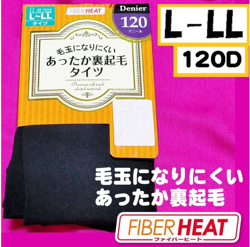 匿名★同梱歓迎【Z×5】★FIBER HEAT 毛玉になりにくいあったか裏起毛タイツ 120デニール タイツ ストッキング パンスト L-LL 黒