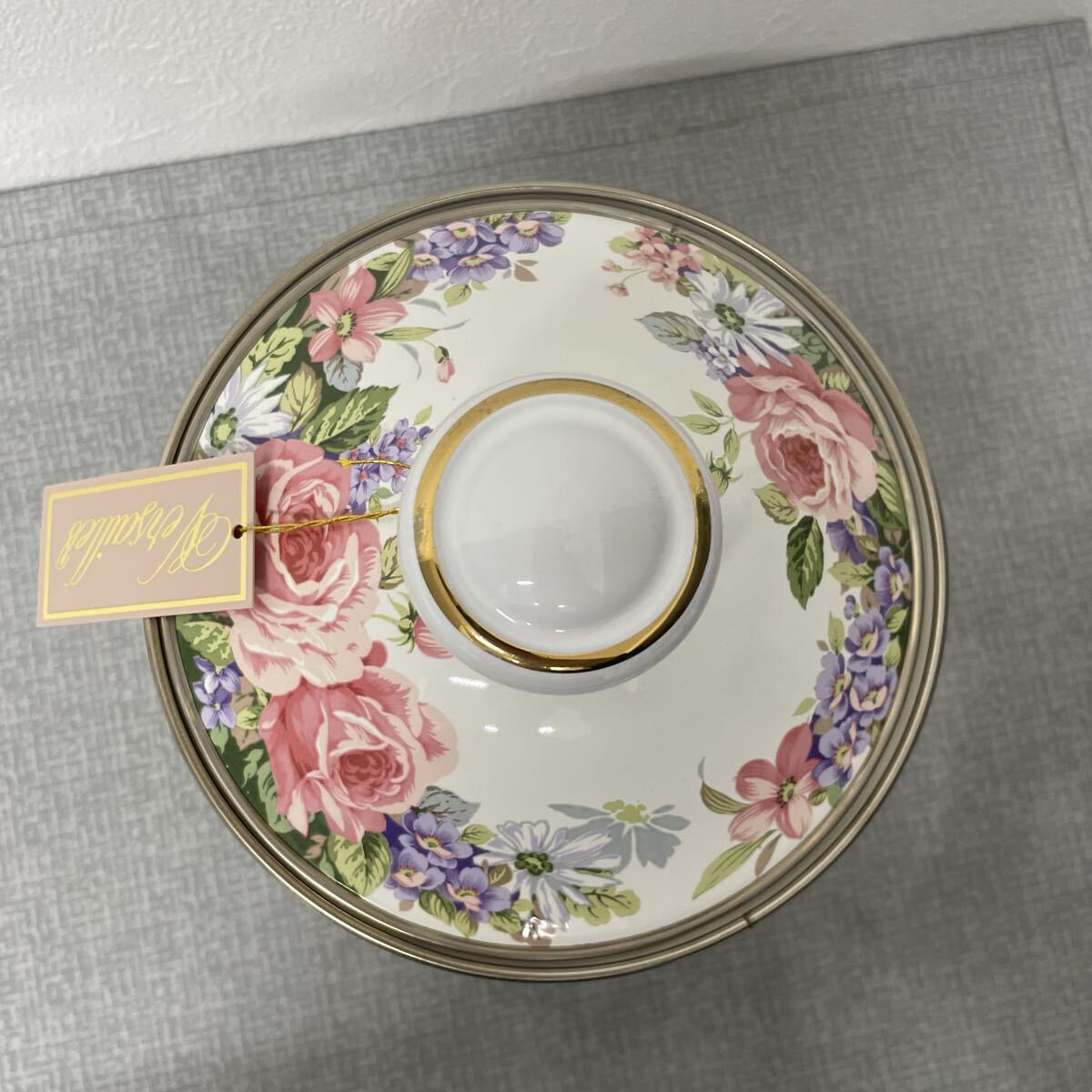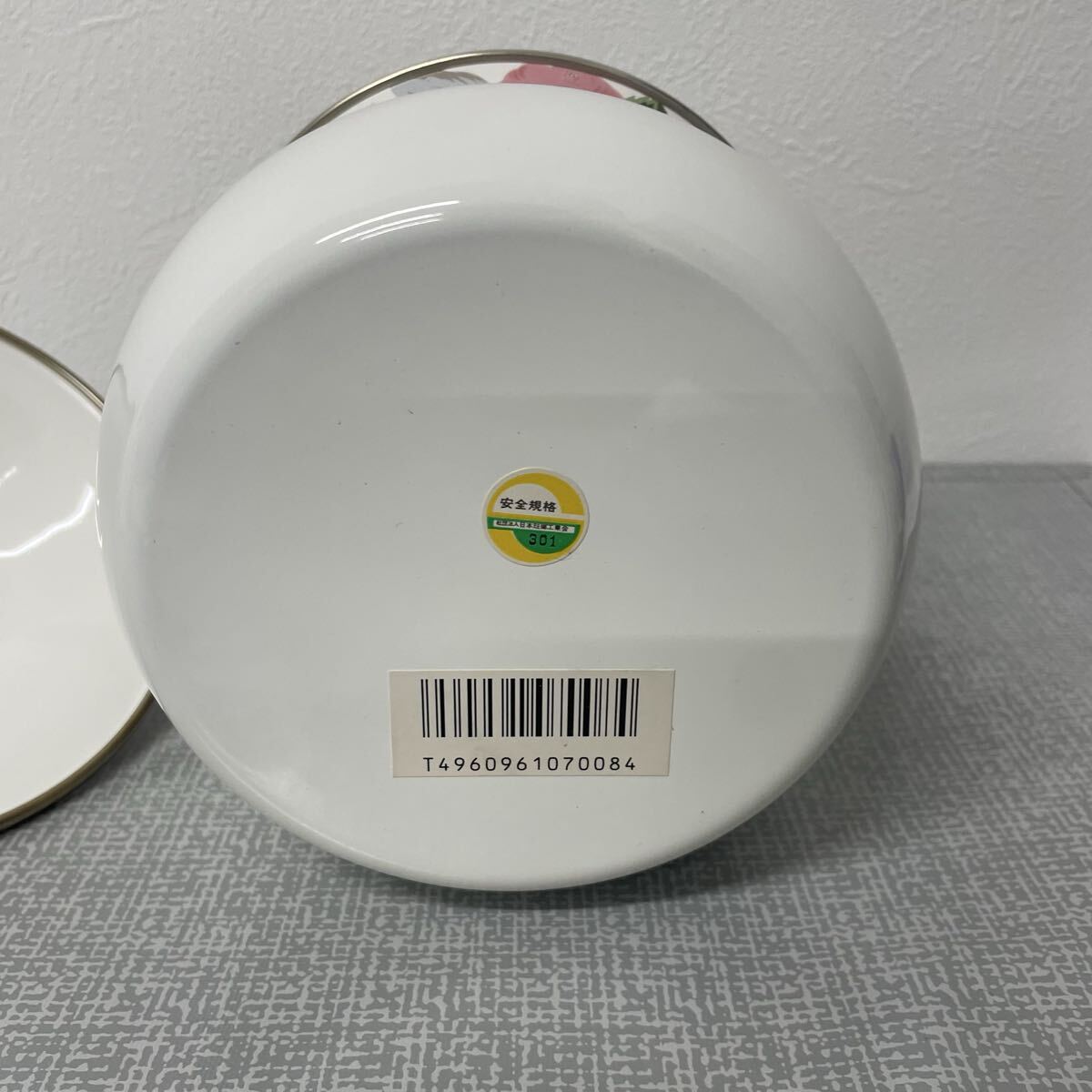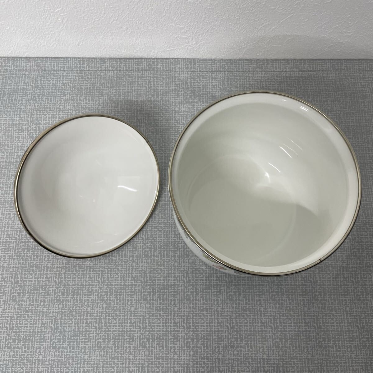 ホーロー鍋 エジリーヴェルサイユ 花柄 陶器キャニスター 金縁付き 蓋付き 高さ16.5cm 直径14cm