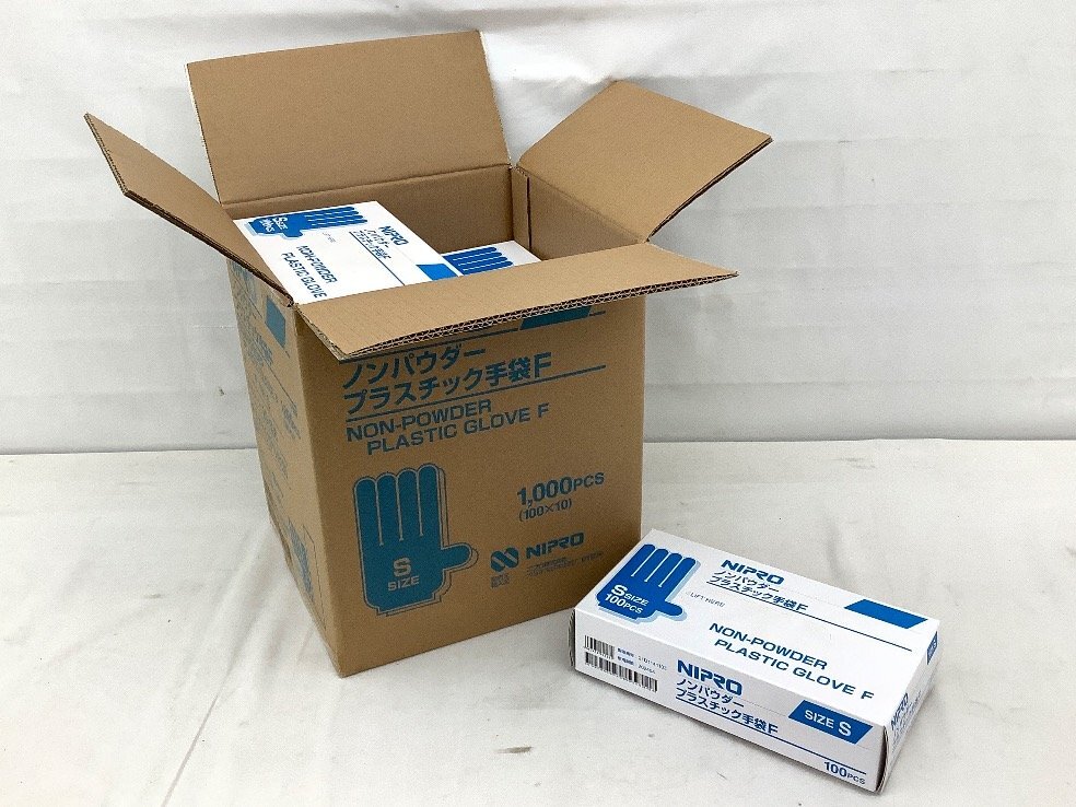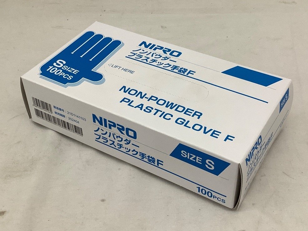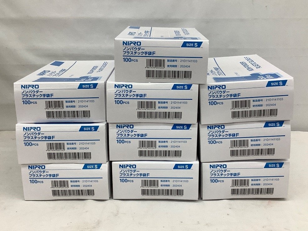 NIPRO ノンパウダープラスチック手袋F/Sサイズ 100枚入×10箱セット 元箱発送/使用期限切れ/ACB 未使用品