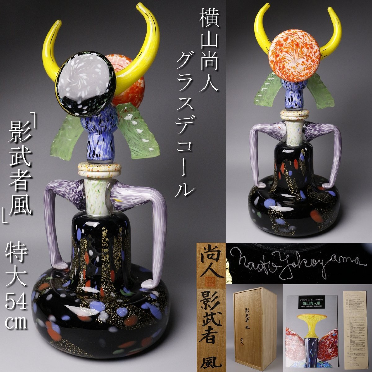 【LIG】横山尚人 グラスデコール 「影武者風」 特大54㎝ ガラス工芸 共箱 コレクター収蔵品 [.IE]25.10