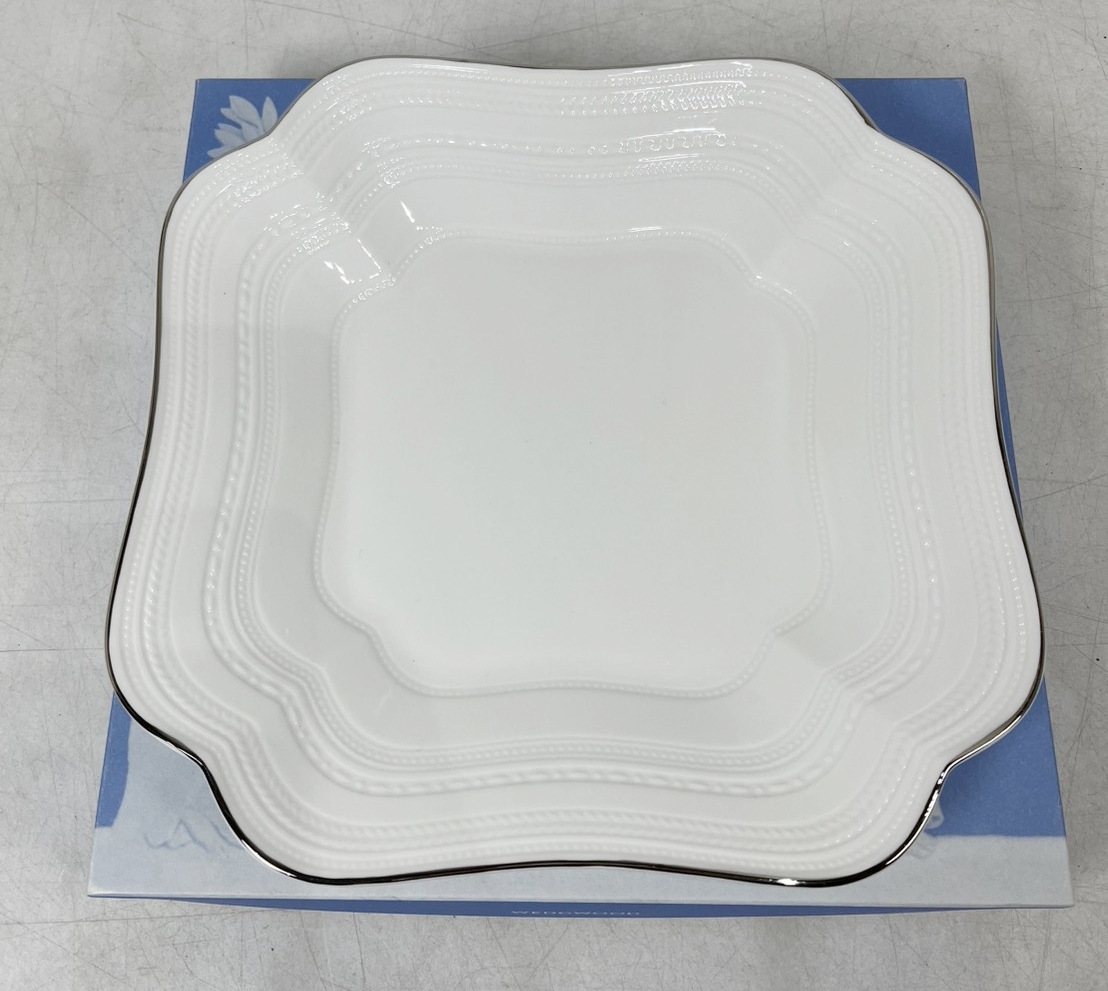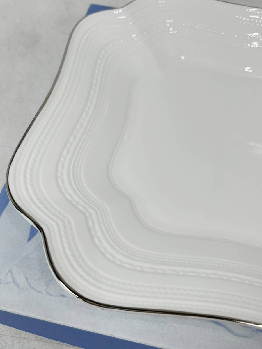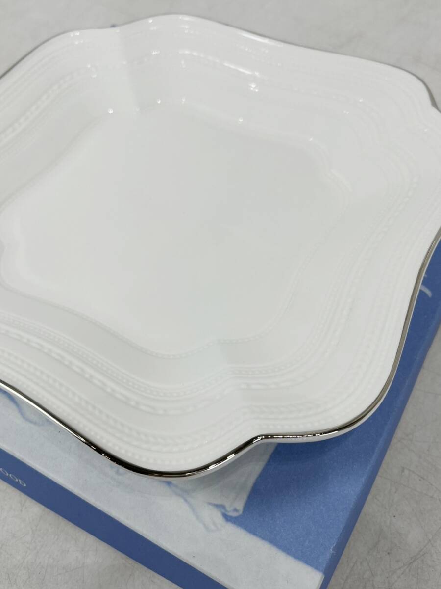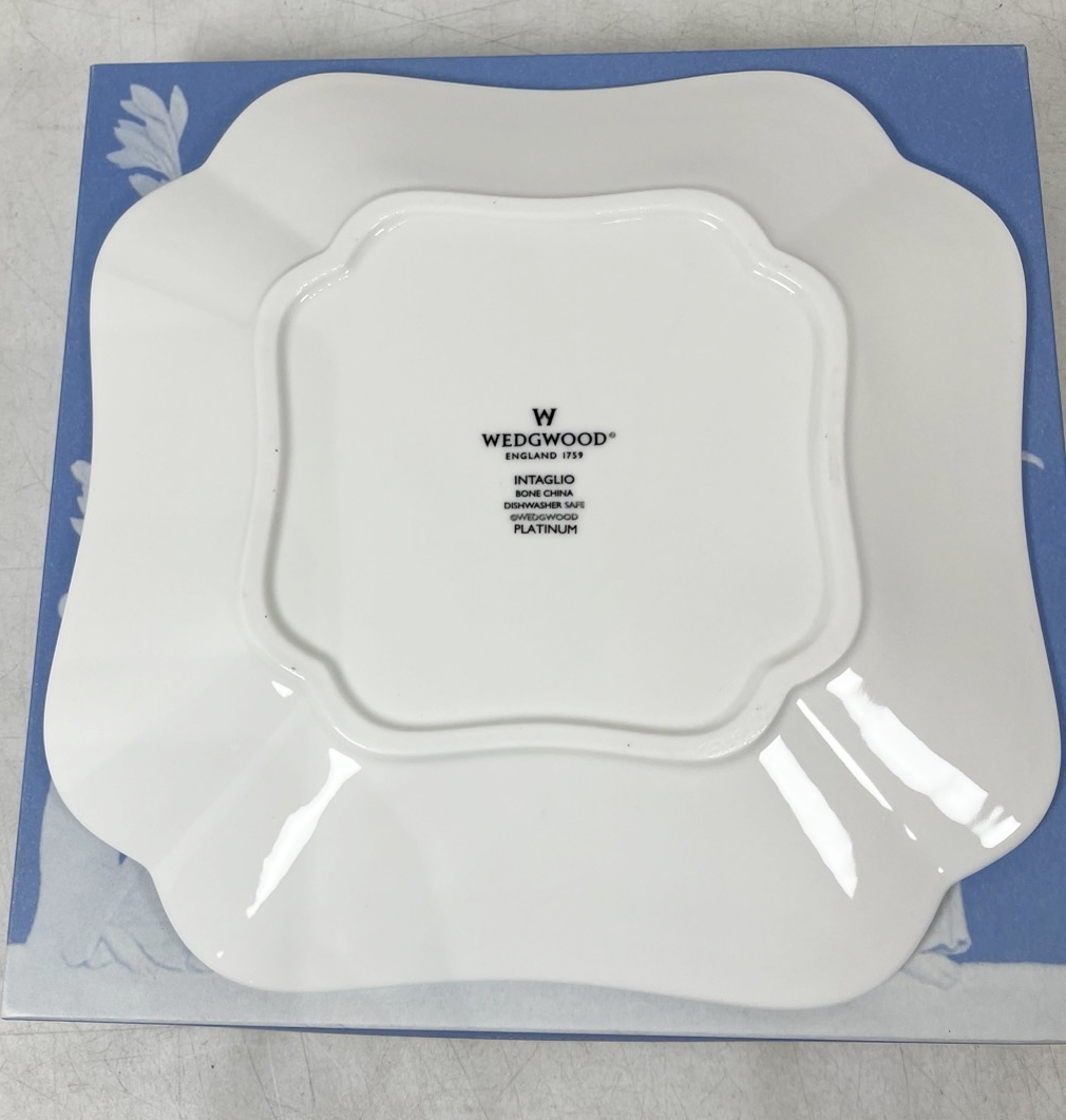 未使用 1円~ WEDGWOOD ウェッジウッド インタグリオ スクエアディッシュ スクエアプレート皿 角皿 シルバー ホワイト 箱あり 日